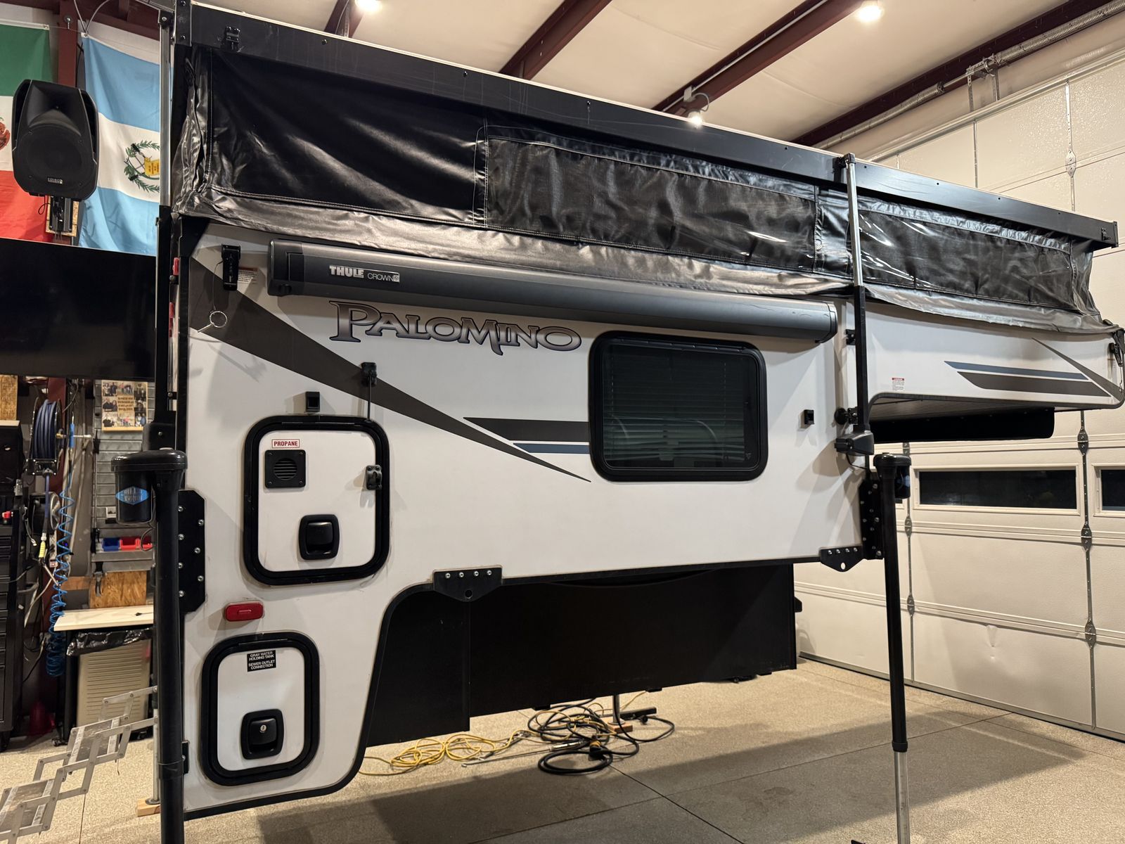 2023, light enough for 1/2 ton with 6ft bed, great condition, loaded with Interior toilet and shower/wet bath, outdoor shower, power camper jacks, power roof jacks, Air conditioner, 3 way fridge runs on propane, battery or Electricity, on demand water heater, Thule awning, will include 2800 watt portable generator. Great condition, Everything works