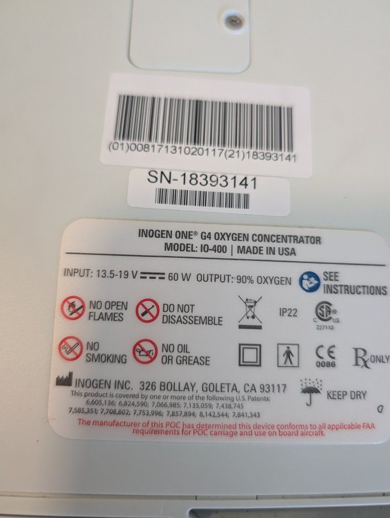 VenmoInogen One G4 Oxygen concentrator. We believe it is about 5 years old. The columns were replaced 2 months ago. It works great