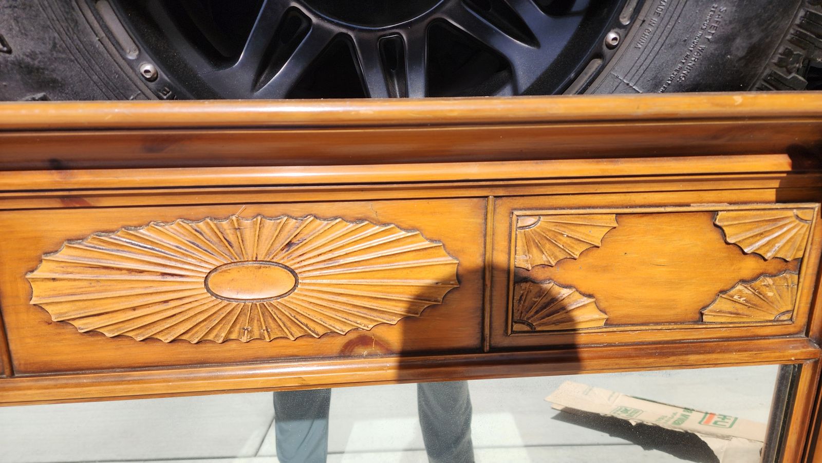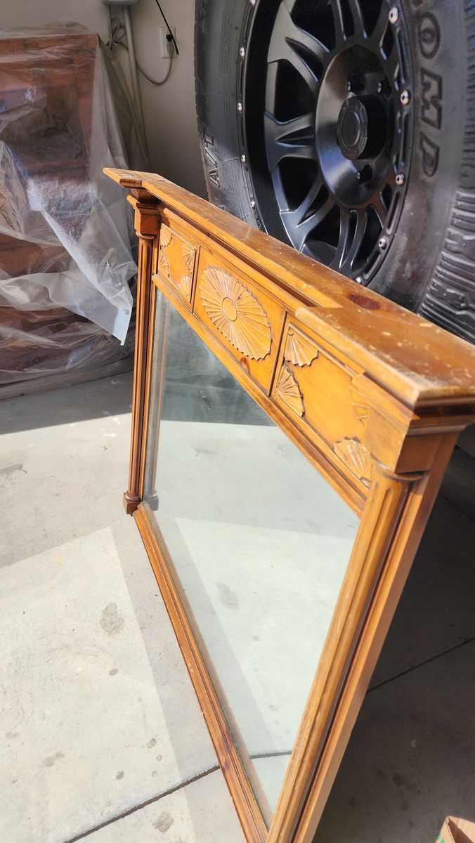 VenmoThis particular mirror design has carved sunburt and fan motifs is reminiscent of syles popular in the late Victorian or Edwardian eras, often found in American or European homes.