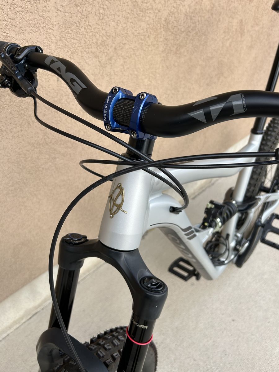 Upgraded parts include: Rockshox Lyrik Select fork Industry Nine Enduro S wheelset Industry Nine stem TAG Carbon 40mm rise handlebar