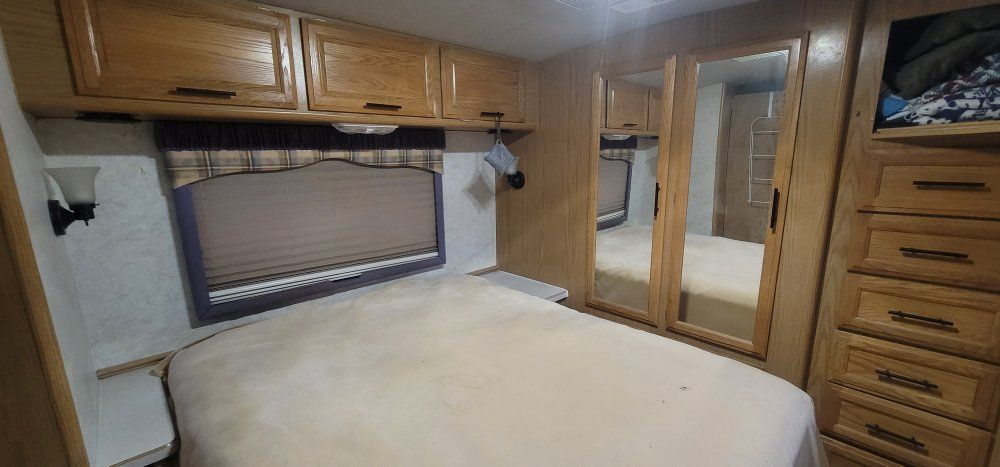 No roof leaks!!! 🥳 Or old water damage Good tires (with tire covers!) All systems work (water, heating, cooling, etc) This model has all the works - including laundry! The combo unit needs maintenance or to be replaced. It doesn't drain properly. Drives like a dream! Generator is works well. Tons of storage. we purchased a very comfortable, high-end Queen mattress for bedroom. 1 slide in living room, works great!