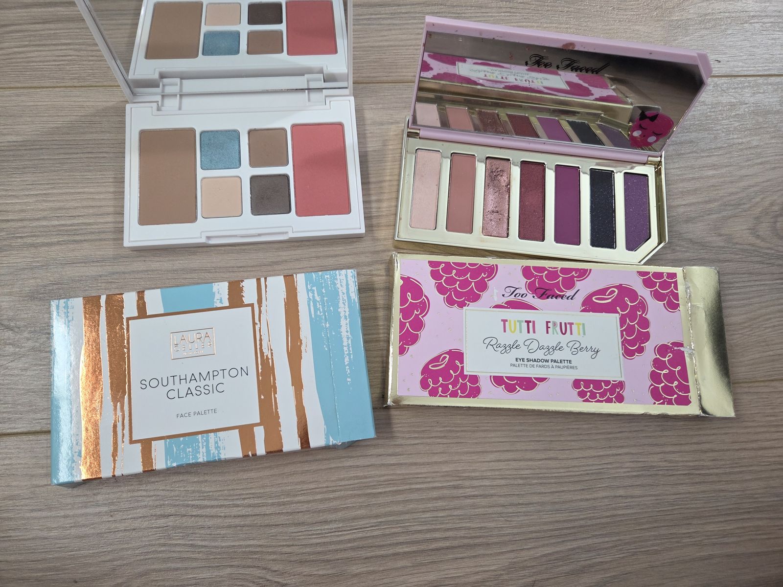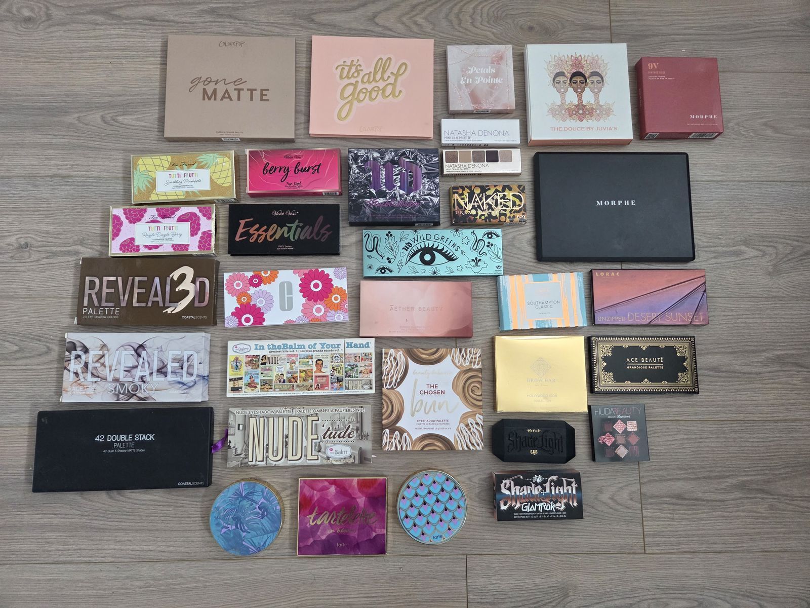 Venmo$10 each. FCFS. No holds without payment. Options: Kat Von D Shade and Light Plum Kat Von D Shade and Light Glamrok with box Huda Beauty Mauve Obsessions - SOLD Natasha Denona Mini Lila - SOLD Natasha Denona Mini Glam with box Violate Voss Estentials Pro Series Violate Voss Berry Burst with box Tarte Tartelette in Bloom Tarte Be You Eyeshadow Palette Tarte Rainforest of The Sea III Urban Decay Troublemaker Palette with box Urban Decay Naked Foxy with box Urban Decay Wild Greens with box Lorac Unzipped Desert Sunset Too Faced Tutti Frutti Razzle Dazzle Berry with box Too Faced Tutti Frutti Sparkling Pineapple with box Clinique All About Shadow Palette - SOLD Aether Beauty Summer Solstice with box Laura Geller Southhampton Classic with box Brow Bar Hollywood Icon with box theBalm In theBalm of You Hand Vol 1 - SOLD theBalm Nude'tude Ace Beaute Grandiose with box Juvia's The Douce with box - SOLD Beauty Bakerie The Chosen Bun with box ColourPop It's All Good ColourPop Gone Matte with box ColourPop Petals En Pointe with box CoastalScents Revealed 3 with box CoastalScents Revealed Smoky - SOLD CoastalScents 42 Double Stack - SOLD Morphe Vintage Rose with box