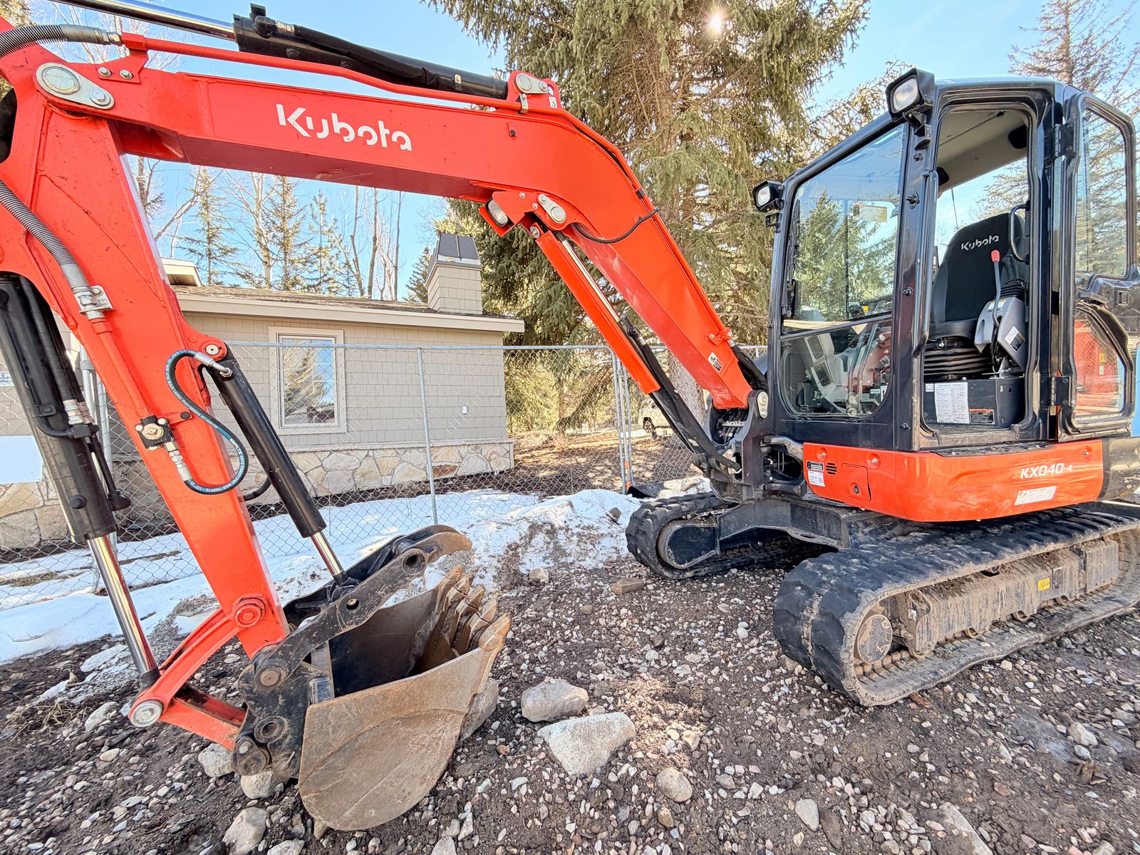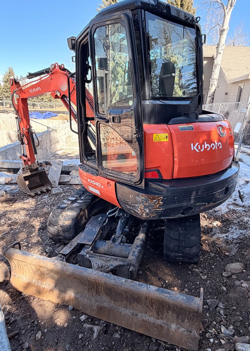 2024 Kubota KX040 -4R3A Excavator Mini Ex ***LOW HOURS*** 731 hours, Kubota turbocharged diesel engine, 41 HP, hydraulic transmission 4,080 lb lift capacity (over front), 13.8 in rubber tracks, hydraulic angle blade, 67 in wide x 15.2 in tall, 24 in digging bucket, 9,480 lb operating weight, hydraulic joystick controls ROPS, heat& A/C hydraulic quick coupler, hydraulic thumb, auxiliary hydraulics with proportional flow control, auto-idle. Call for VIdeo or more details. Financing Available