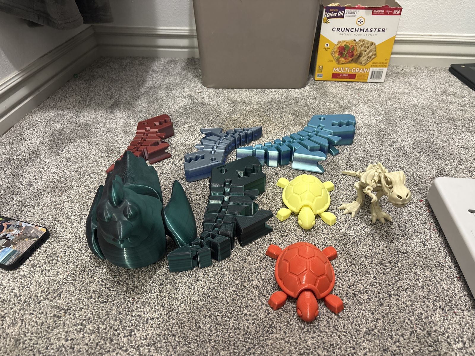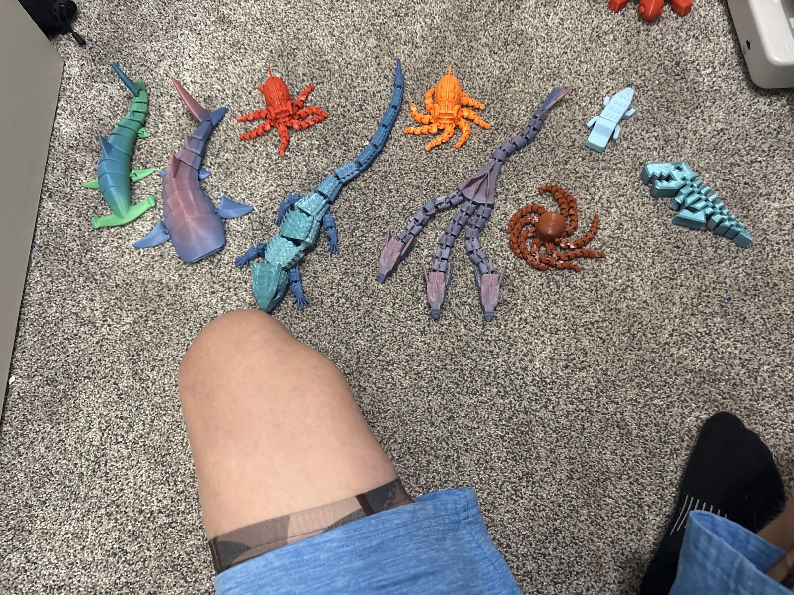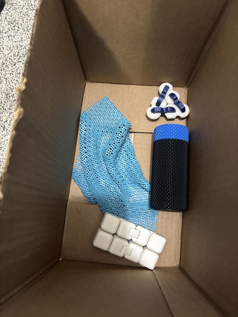 VenmoComes with 1 big 3D print 1 fidget 3-D print 1 multicolored 3-D print Then 2 medium sized 3-D prints or a small and a medium or two smalls
