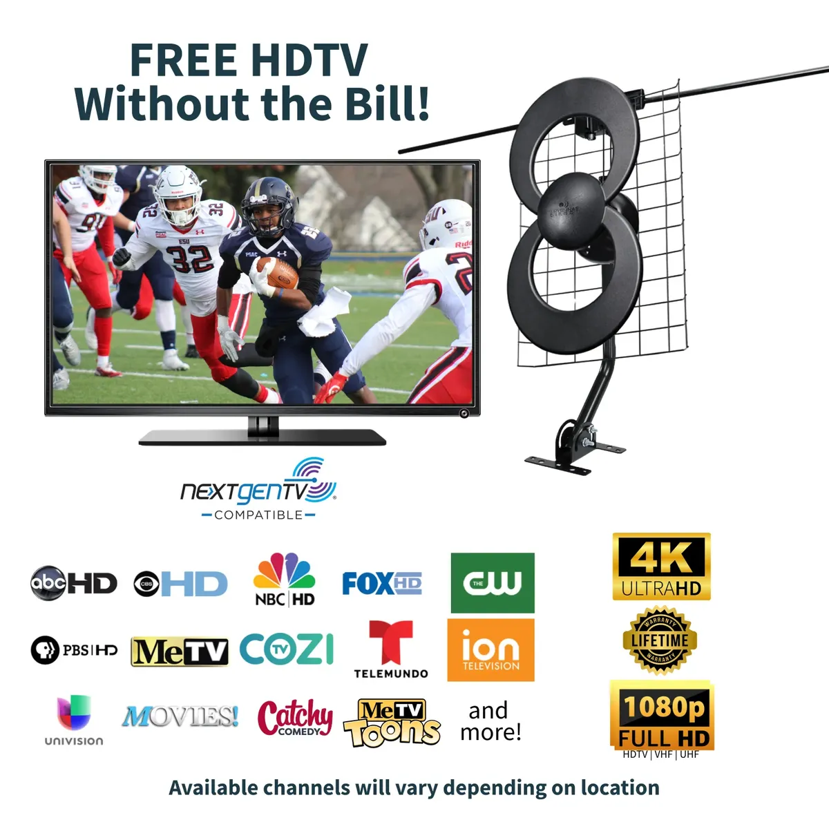 Tv Antenna. UHF-VHF Indoor/Outdoor 60 + Miles