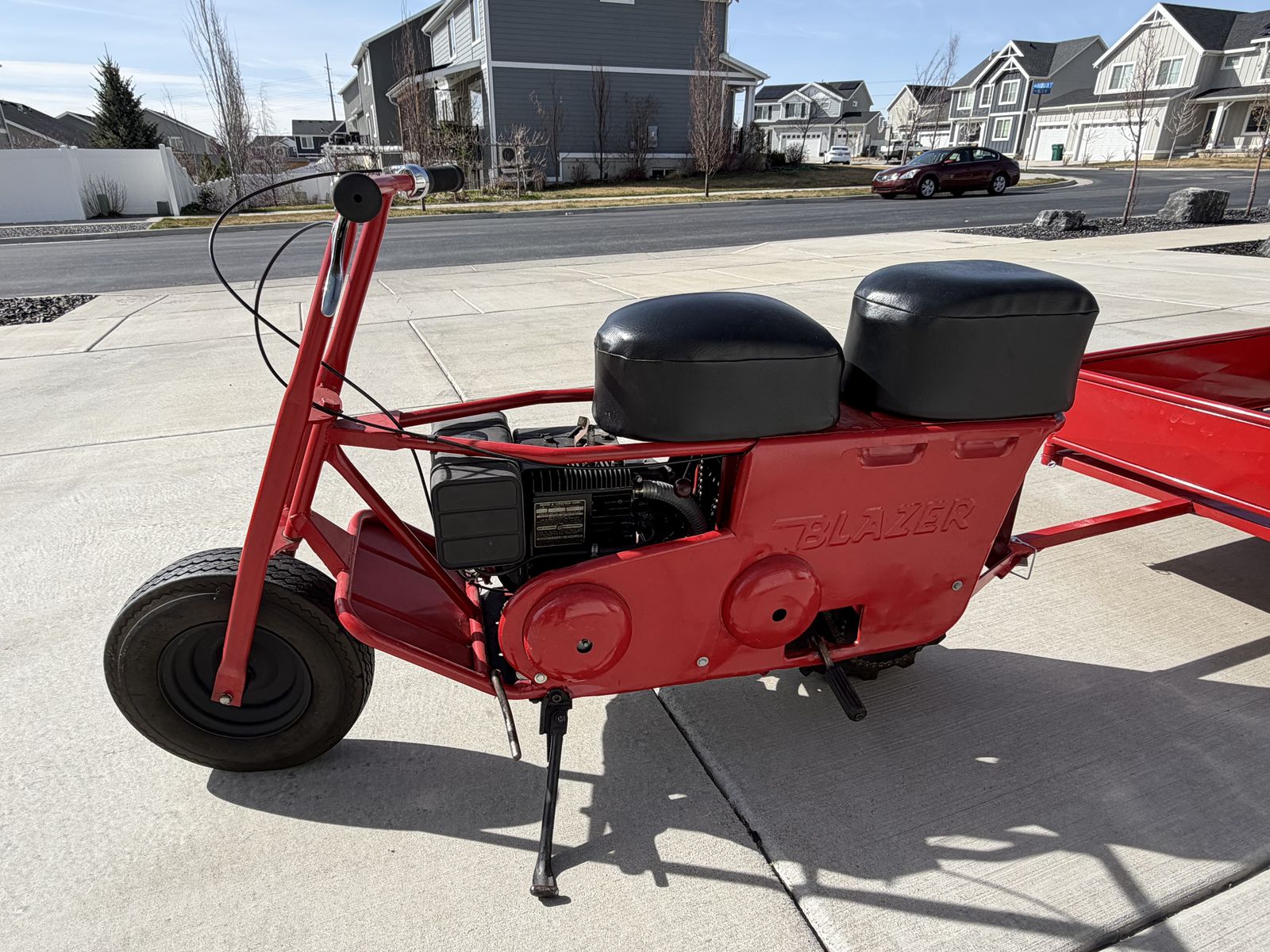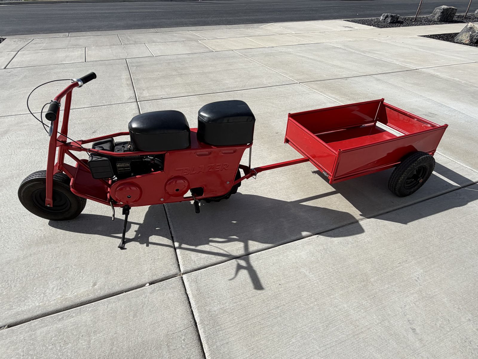 The bike is capable of hitting 25 miles per hour and was powered by a 7 horsepower Briggs & Stratton engine. The transmission has a ‘cruising’ mode and a ‘climbing’ mode.