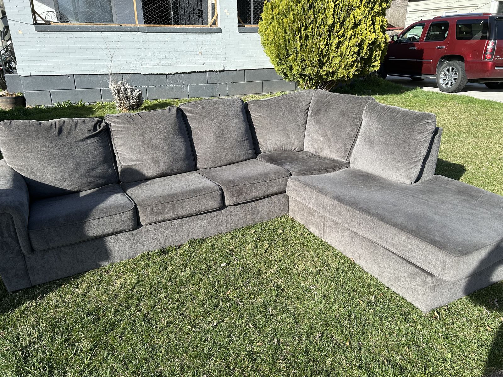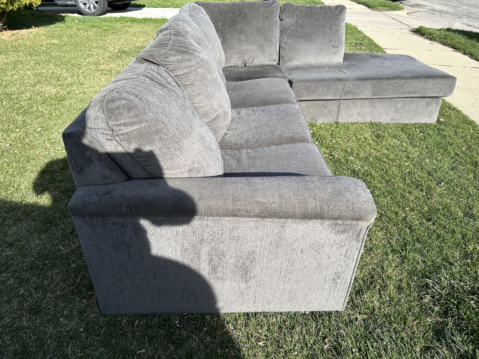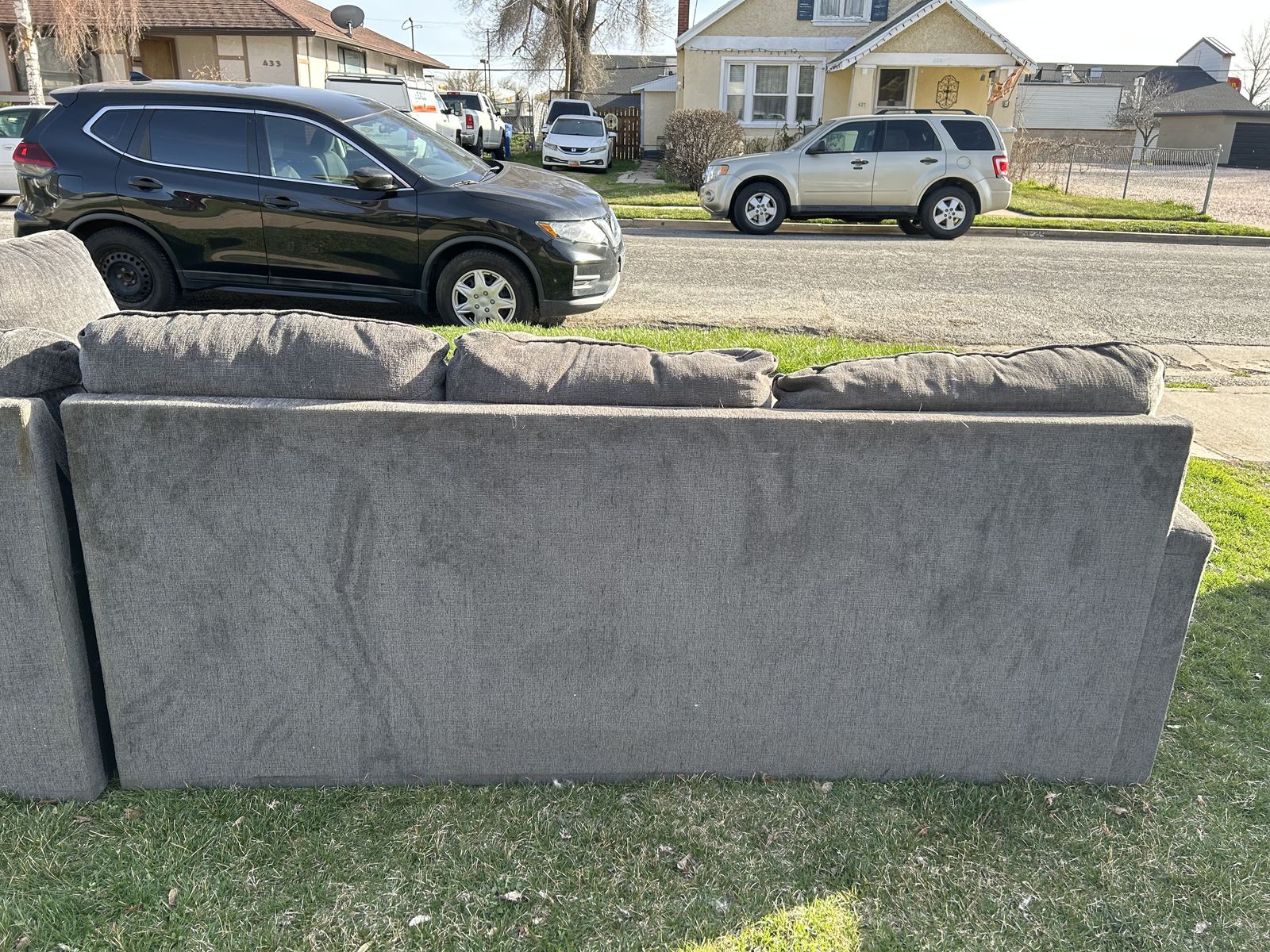 Free L-Shaped couch, purchased from Ashley. This is a rip on a couple of cushions, otherwise it's in great shape. This couch is one year old. First come first serve. Please don't text me if it is still available. When is gone this posting will be delete. The address is 428 Cross St. Ogden.
