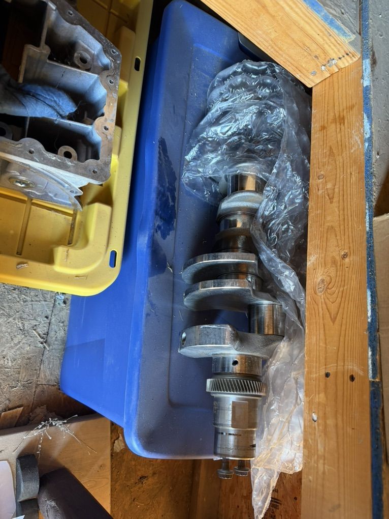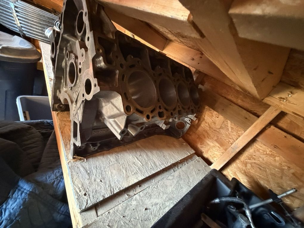 6.7 powerstroke machined and bored block I believe it’s a .25 bore no paperwork though had 52k then a injector burned a hole threw a piston. upper and lower oil pans, front and rear covers, usable rods, near perfect crank and camshafts and a lot more parts $2000 or trade No heads or valve train