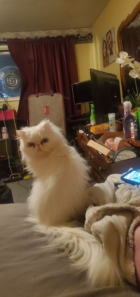 Meet Louis, he is a pure breed Long Hair Persian fully white with blue eyes. CFA registered and breeding rights. He loves to cuddle. He's a proud dad of more than SIXTY super healthy kittens in more than 16 litters. He'll be the best stud for your queen with 4 years of experience. The last photos are some of his litter and kittens he made.