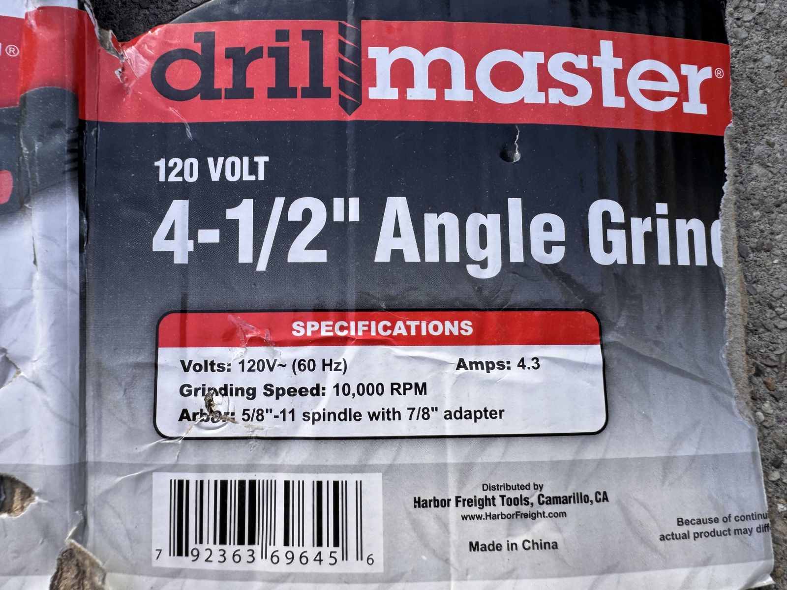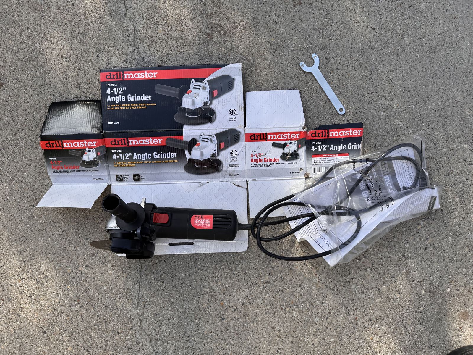 ApplePayTested and working Drill Master 69645. Features 120 volt grinding speed 10,00” RPM 4.3 amps. Includes owner’s manual pin wrench, used cord, slightly nicked.
