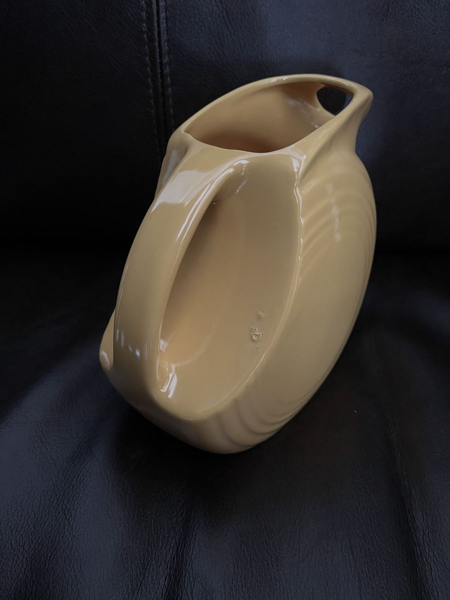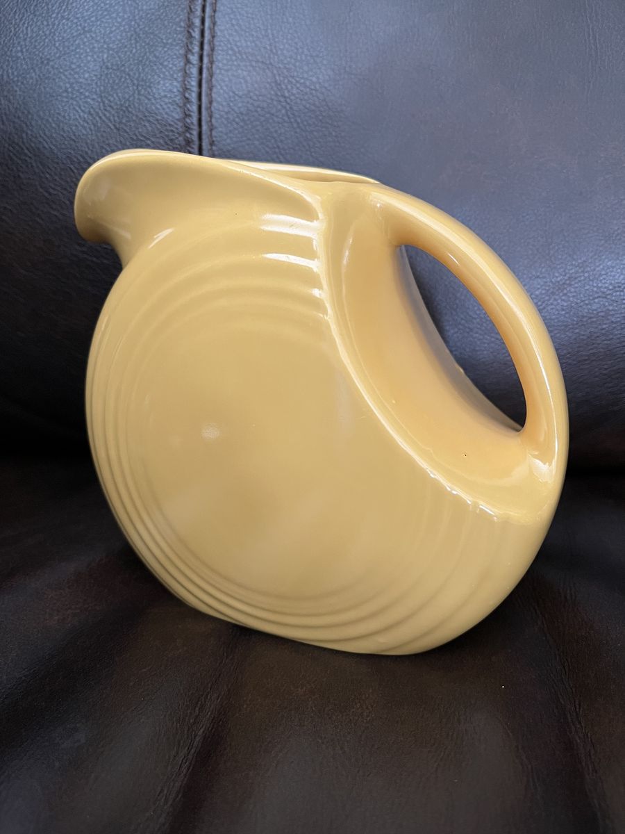 VenmoHomer Laughlin started making Fiesta in the early 1930's. They started with only five colors. This bright yellow is one of those original five colors. This is 5 3/4 tall x 6 wide. It has sat on a display shelf for many, many years. This is marked 'Fiesta' on the bottom. This is in great condtion, but it has a glaze bubble that it came from the factory with. As shown in the photos. Own a fun piece of history. Price is firm.