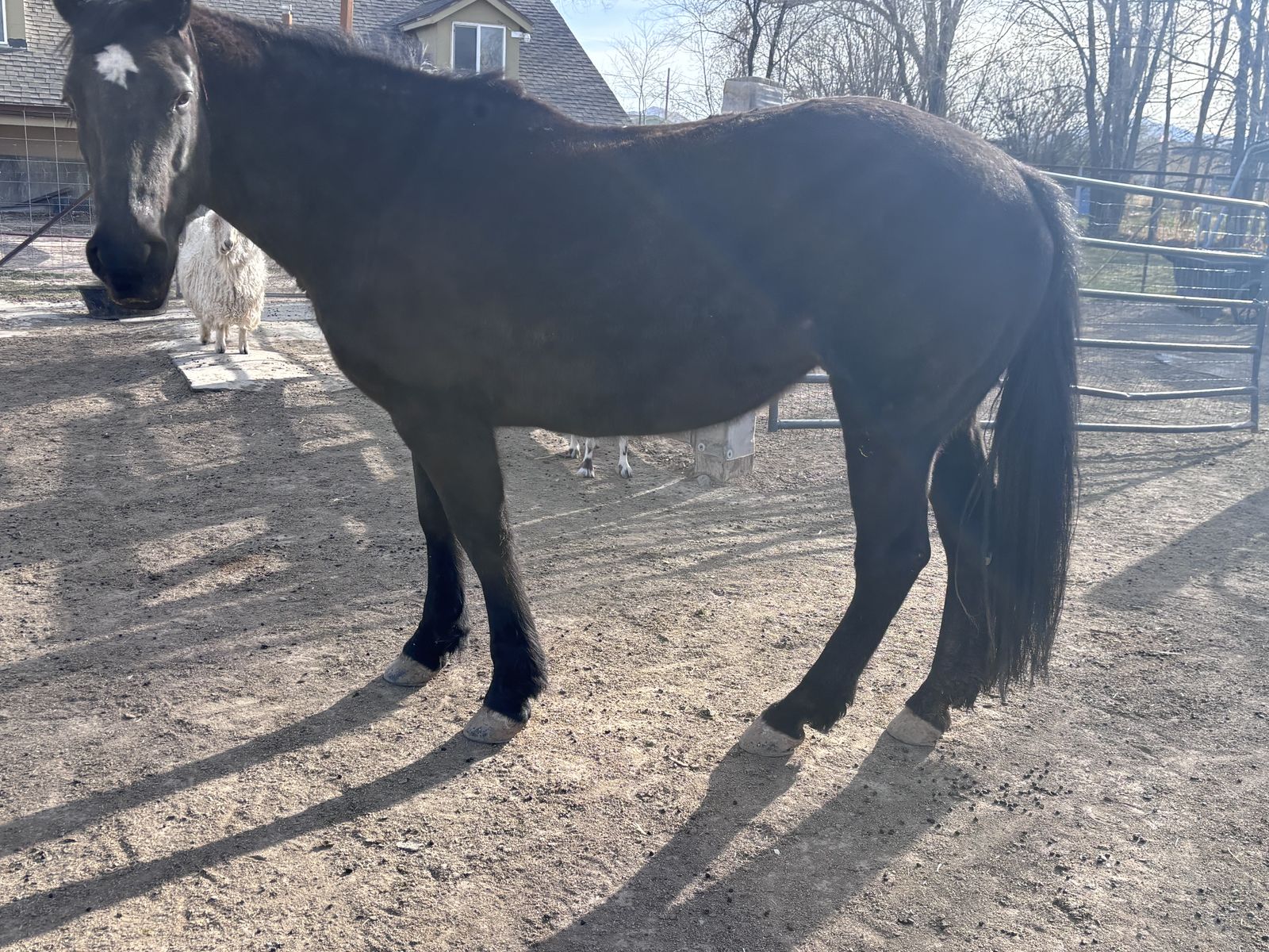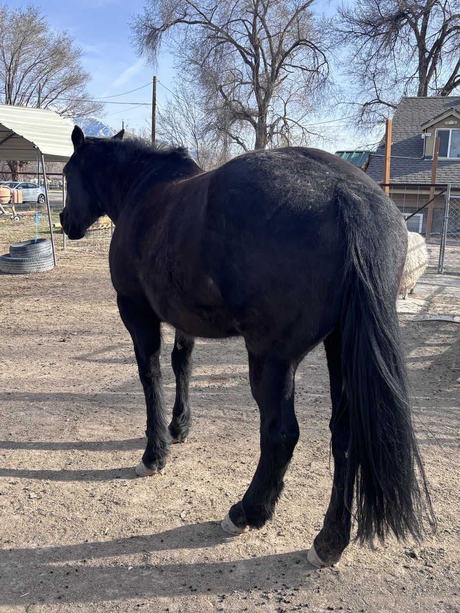 Big quarter horse mare. I don’t have the time to give this mare what she needs. She’s spookier than I like and needs someone to put some time into her. She does best when worked with consistently. Hasn’t been ridden in a while but is generally good under saddle. She doesn’t offer to buck but lacks confidence so a good seat is a must. Nothing fancy training wise but she is smart when teaching new things. Needs someone to put some finesse into her and she could make someone a very nice mare. When she was being used she was lovely in the hills/mountains. I was told when initially purchased that she had been used as a pack horse though I have never used her for this. She’d probably benefit from some left hock maintenance if ridden consistently though I’ve never done injections or meds for her.