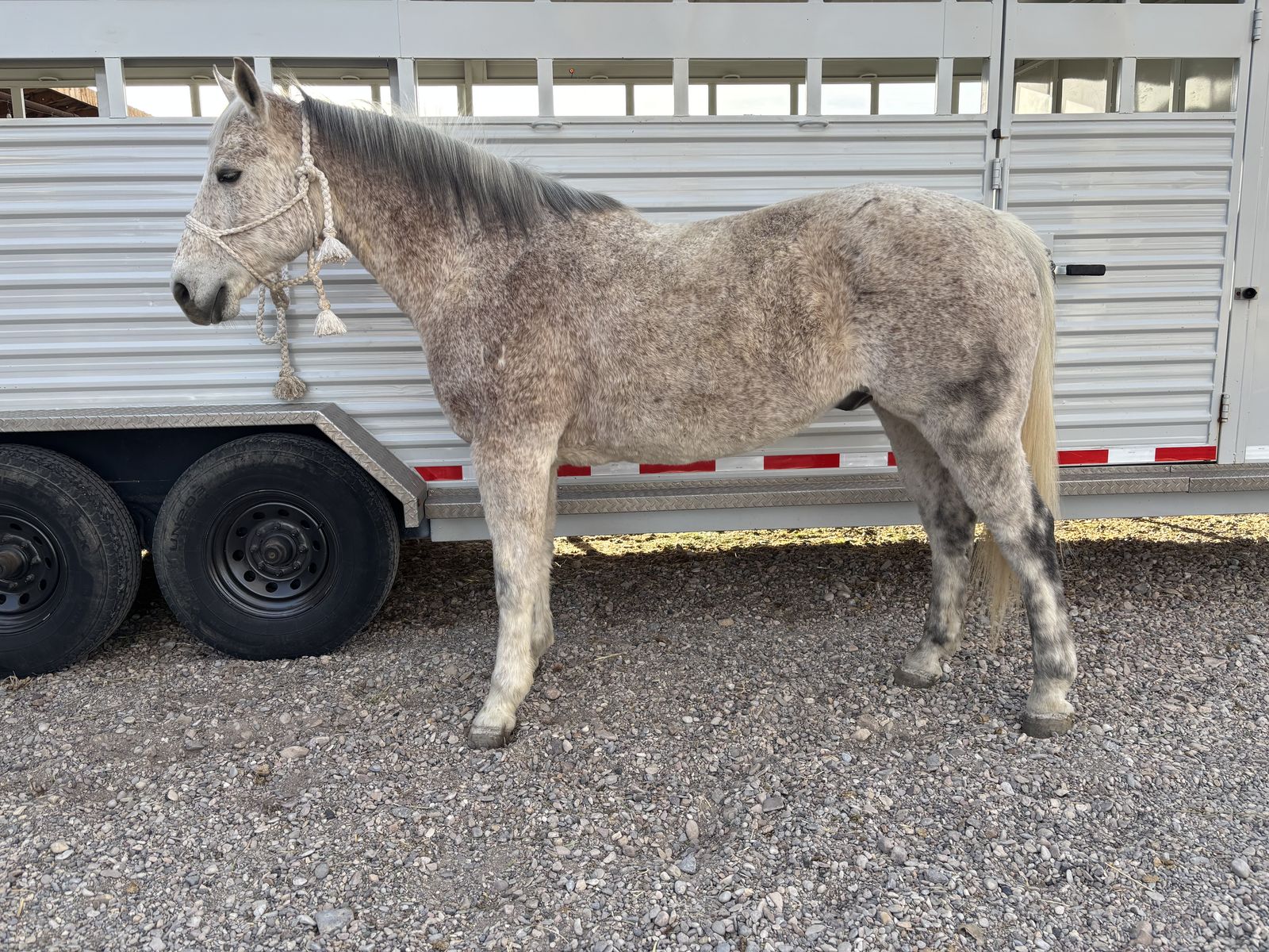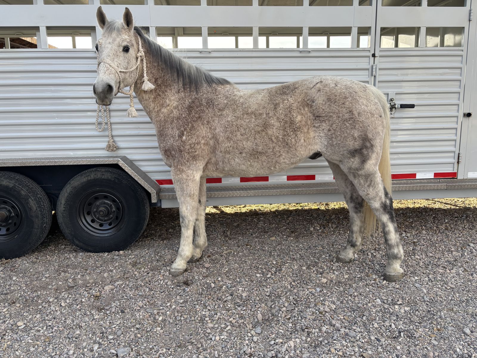 He is a finished head horse that will never get out ran. He loves roping and pulling steers. Wether your in the arena, branding pen, or in the mountains he will eat it up. I rode him all last year in both Highschool and RMPRA Rodeos. Along with hauling him to ropings. He can handle anything you put him up too. He is the best mountain horse you will ever ride and will out walk every horse in the country. He puts his head down and flat out travels he has been on many years of trips to the mountains he has packed out Deer, elk, Bighorn sheep, buffalo you name it he will go all day. This horse has been there done that.