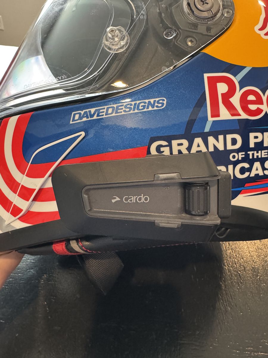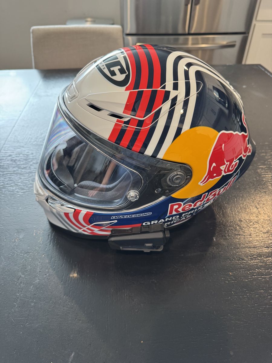 ApplePayHigh-end HJC RPHA 1N Pro motorcycle helmet with Red Bull Grand Prix graphic. Includes Cardo Packtalk Neo Bluetooth communication system.