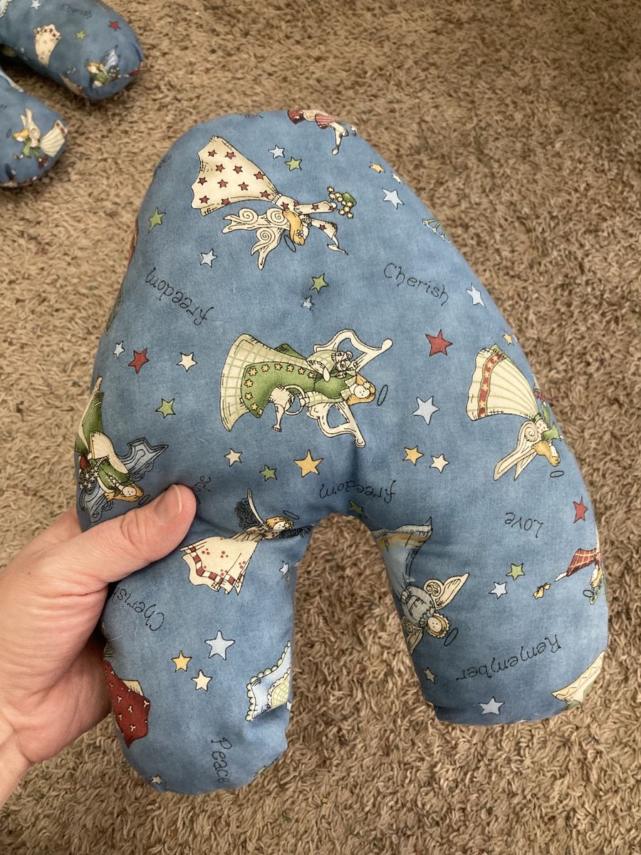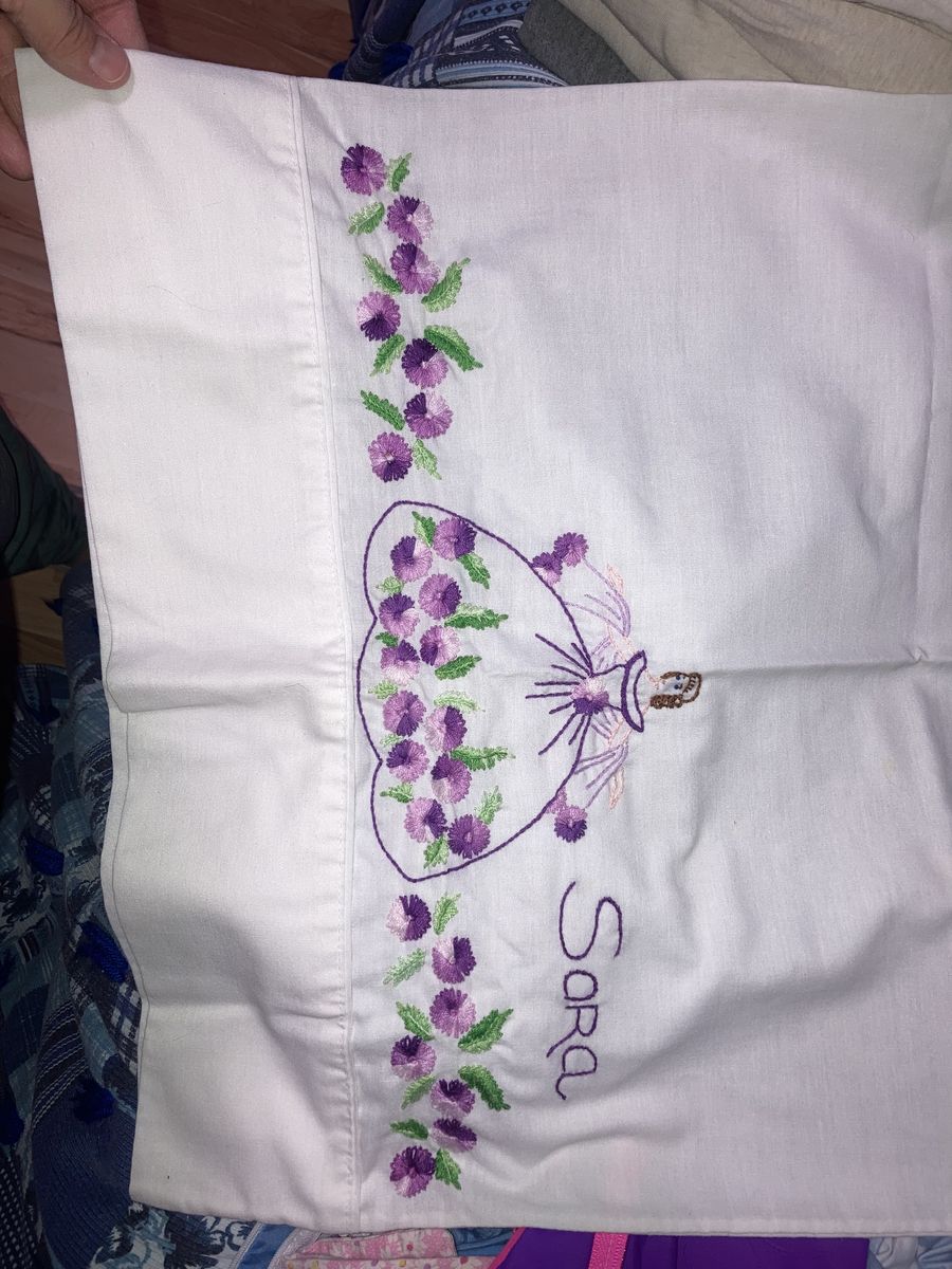 CashAppDo you know a little girl named Sara who loves to decorate her room? She would love these pillows!!! My best friend made them for me when we were tweens and I would love for another little girl to have them and enjoy them! They are each about 12 inches tall. There are a few tiny holes that I’ve repaired. Barely noticeable. Handmade pillowcase for a standard pillow included too!
