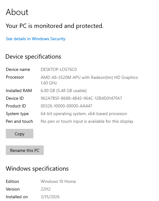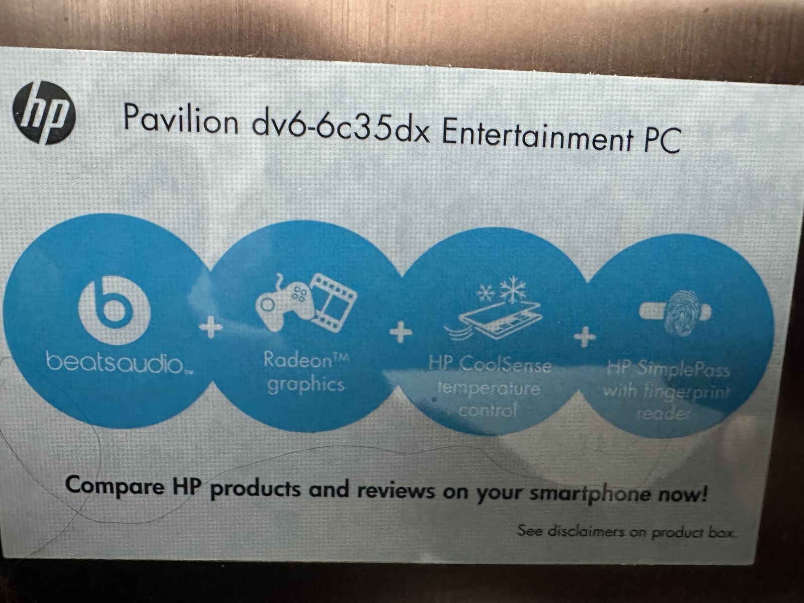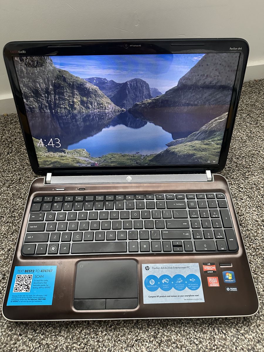 VenmoHP Pavilion dv6-6c35dx Laptop Procesor: AMD A8-3520M APU with Radeon(tm) HD Graphics 1.60 GHz (4 Cores,4 Threads) Memory: 6GB RAM, (could be work with 16GB GB) Storage: 600GB HDD, Ports: HDMI , VGA, 4 USB, DVD,LAN Screen: 15 Battery hold charge very well . Non-original charger included , work very well Windows 10 installed, I also have run diferent Lunux distros and server OS and work very well. Cheap and smart laptop to browsing internet or homelab ,home server project I accept Venmo and Cash