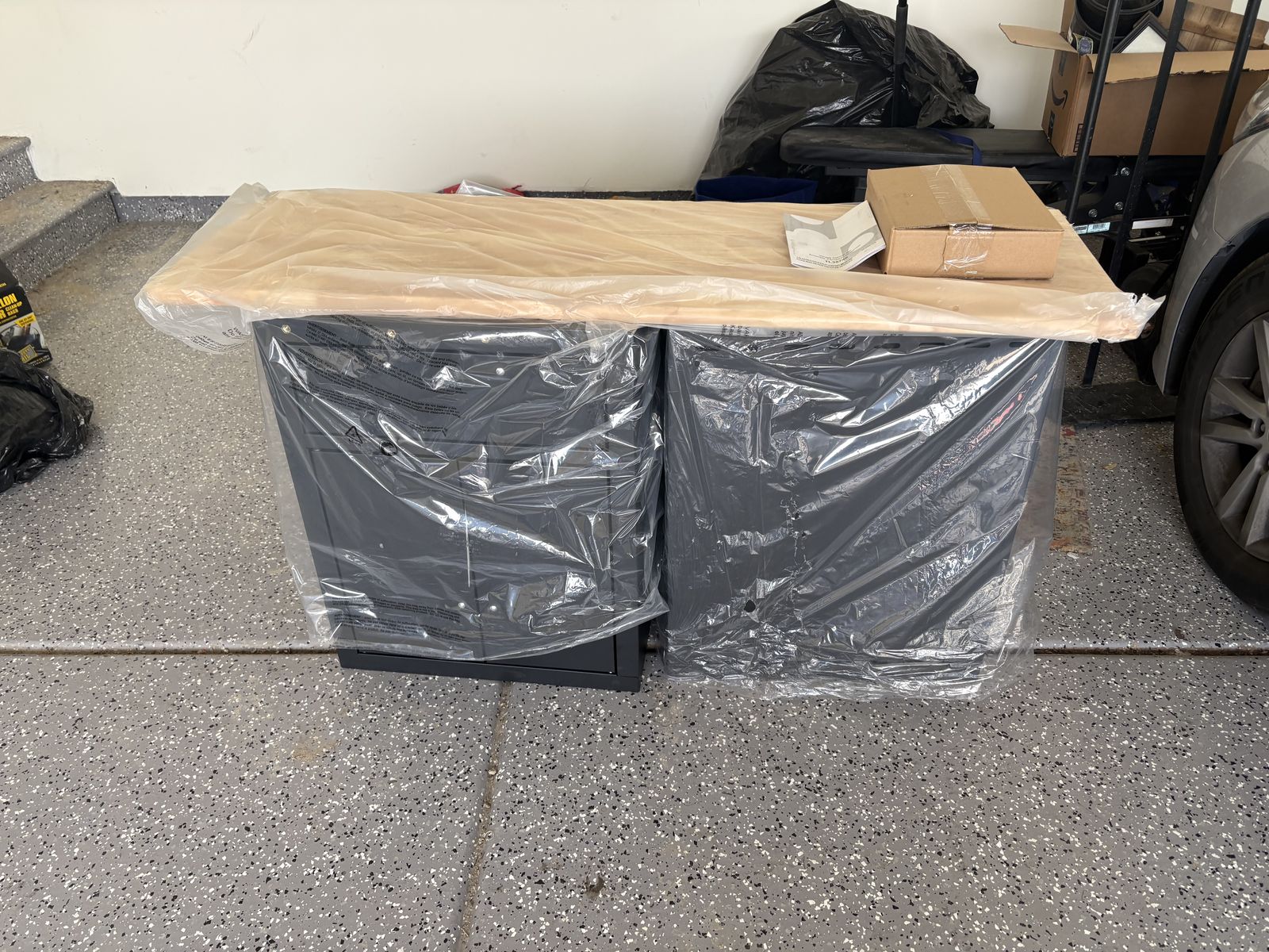 VenmoBrand new garage storage/workbench system. Still in packaging and never assembled. Part of the Total Tactic TL35746 system ($1,200+ new). Includes everything except the tall cabinet: workbench, pegboard, upper cabinets, rolling drawer chest, and rolling cabinet.