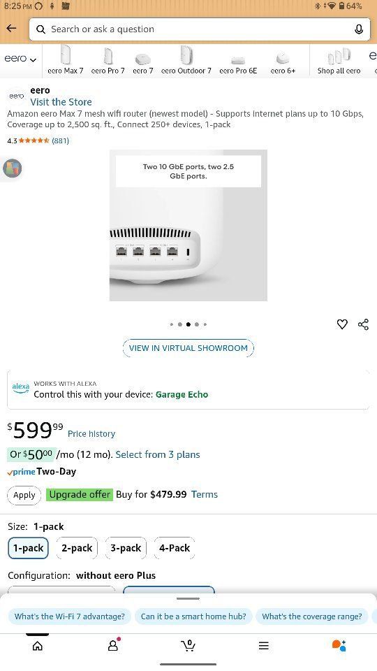 Venmoeero Max 7 tri-band mesh Wi-Fi router* brand new*. Came with Infinity/Comcast Google Fiber Internet install. I already had 4 eero Max 7 routers so I did not need the additional one. Wi-Fi 7 speeds depending on your ISP. These routers work flawlessly and are incredibly easy to set up through the eero app.