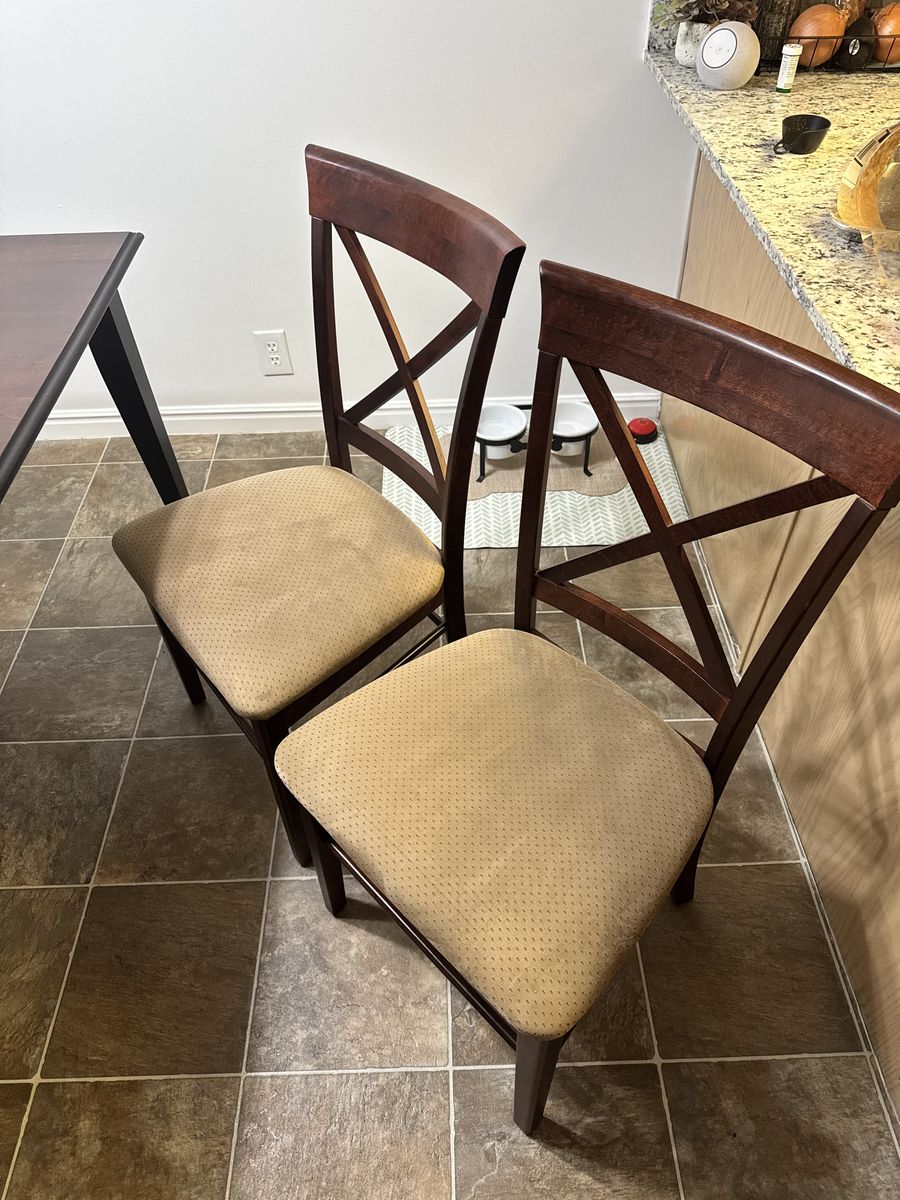 Good condition for the most part. No heat marks, water rings, or scratches on the tabletop. The chair cushions are in good condition as well. No stains that I could see but some could benefit from a clean.