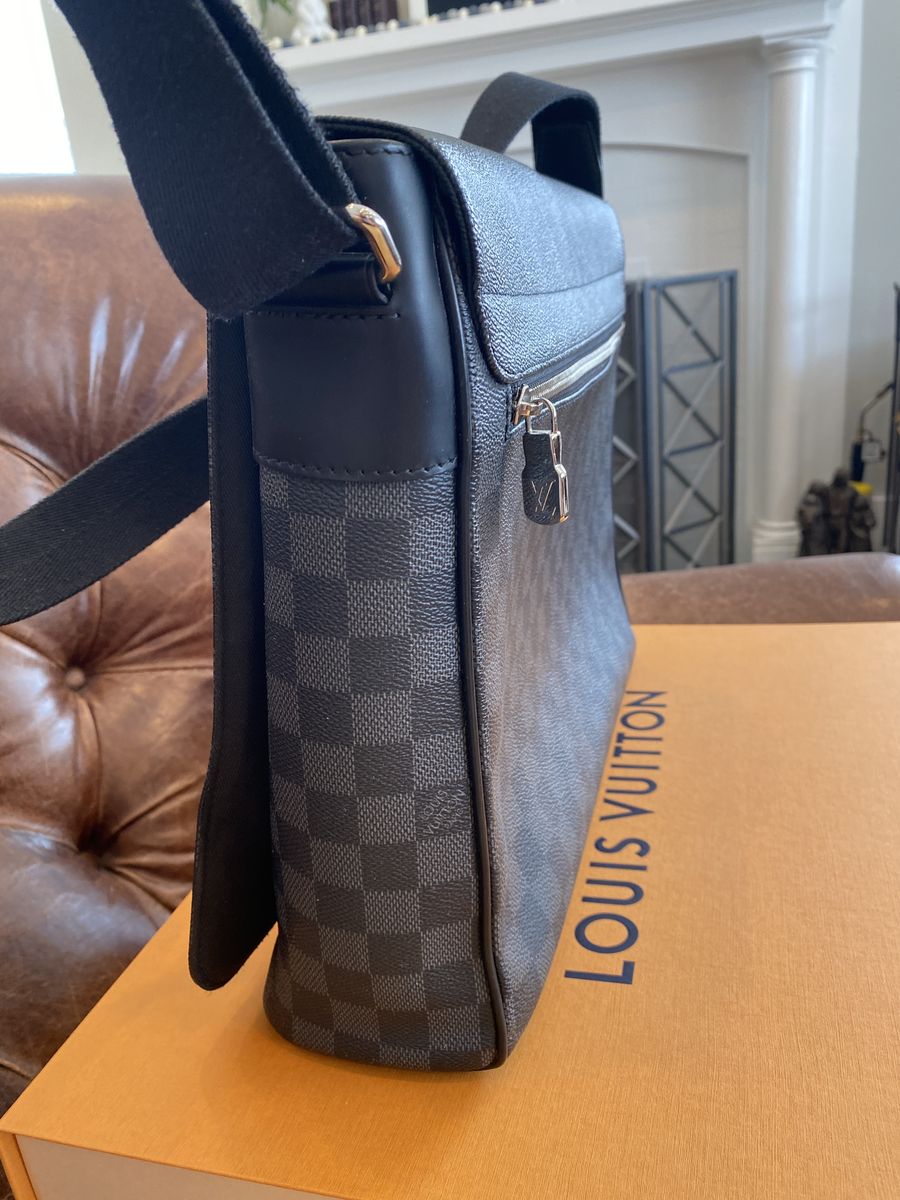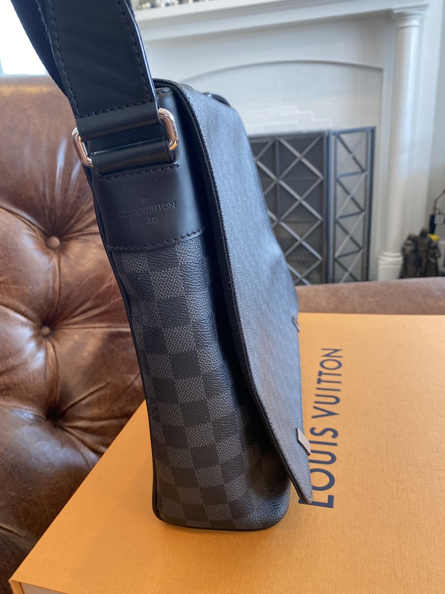 I have a wonderful Louis Vuitton District GM messenger bag in excellent condition. It’s in black Damier and clean inside and out. Comes with original box, dust bag, tags, box and bag. I even have the original receipt showing it was $1820 when new. These GM sized messengers aren’t made anymore and wonderful for laptops, work, school and looking good.
