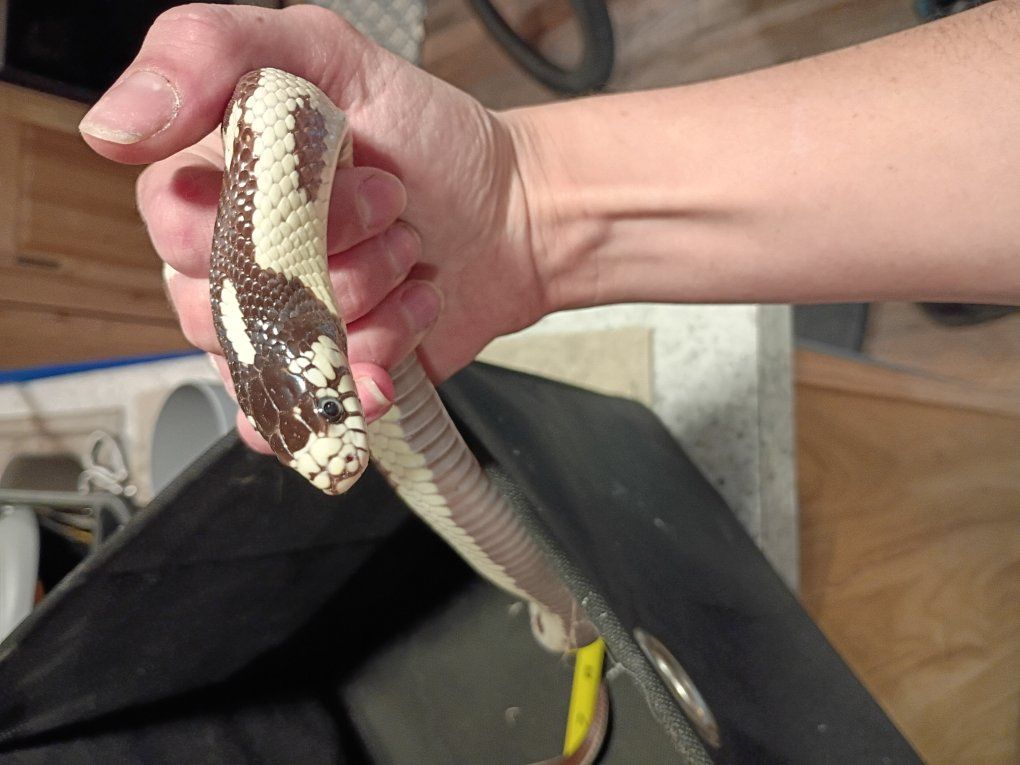 California Kingsnake for Sale Healthy California Kingsnake available. This species is known for its striking pattern, hardy nature, and excellent temperament, making it a great choice for both beginner and experienced reptile keepers. This kingsnake is alert, feeding reliably on frozen/thawed rodents. California kingsnakes are famous for their bold black-and-white banding (some individuals may show variations) and their active, curious personalities. Details: Species: California Kingsnake (Lampropeltis californiae) Diet: Frozen/thawed rodents Great beginner snake Hardy and easy to care for Kingsnakes are fascinating reptiles that stay a manageable size (typically around 3–4 feet) and are known for being hardy captives when provided proper care. Feel free to message with questions or for more photos. Serious inquiries only.