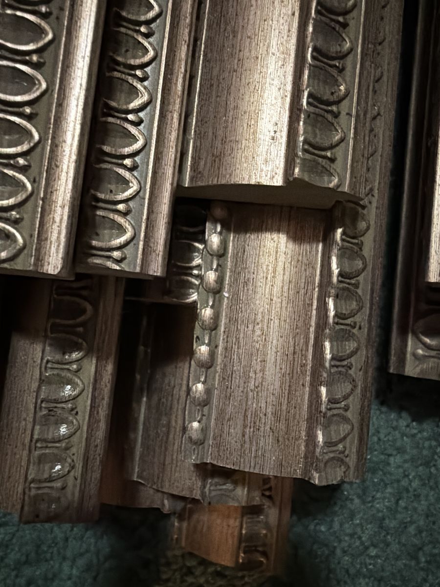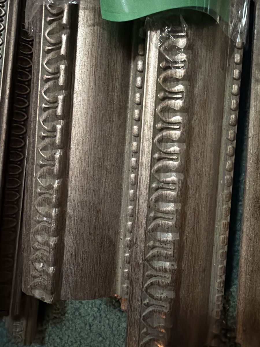These are a must go ASAP left over from a home wedding business/framing co. Multiple designs of plywood in a silver ish finish that goes with anything. There are different amount per design selling as a lot must go Cash and Carry need a large Vehicle. They are 9ft pieces and each is marked with the number in the bundle.