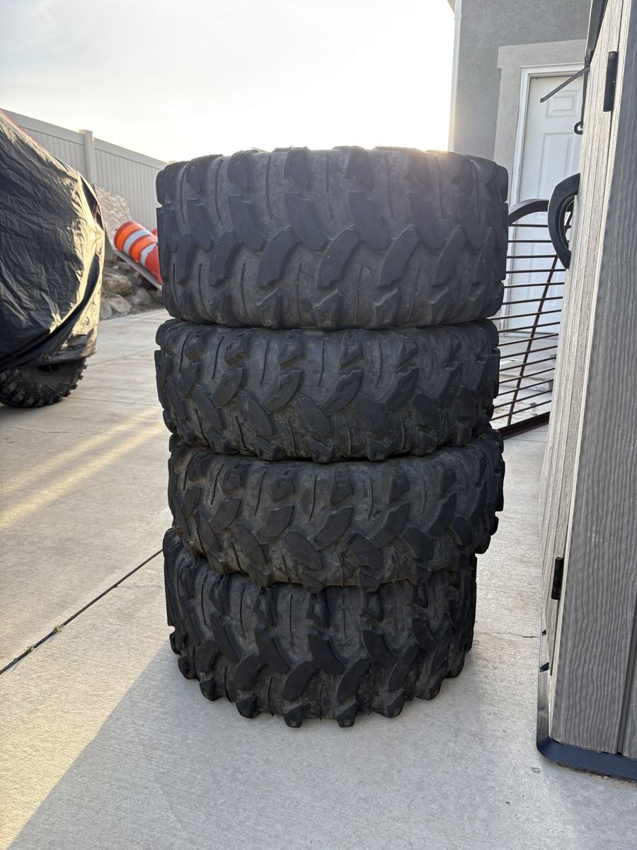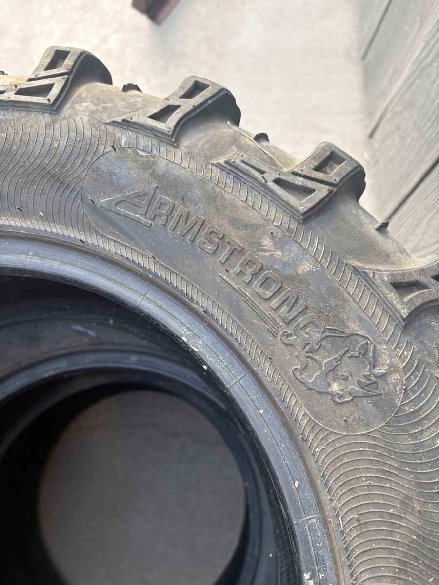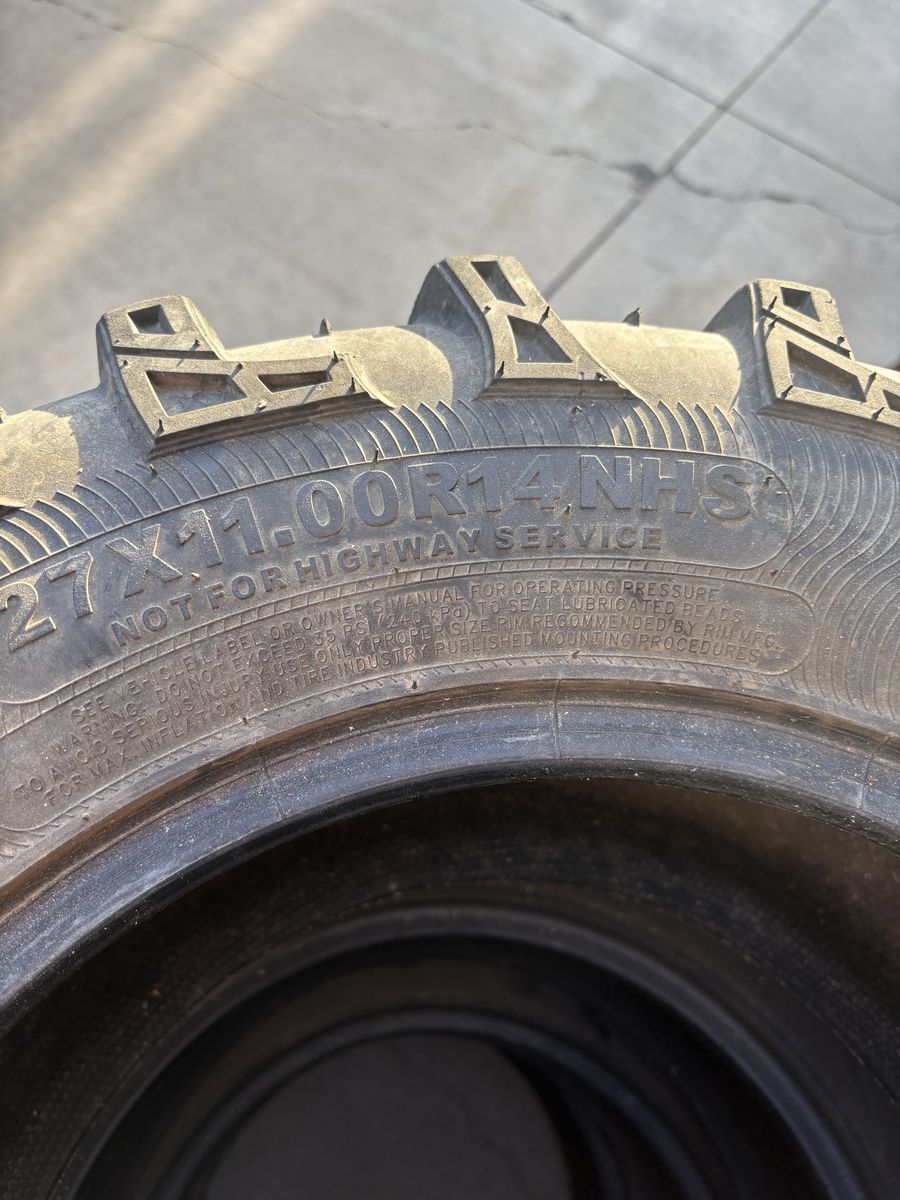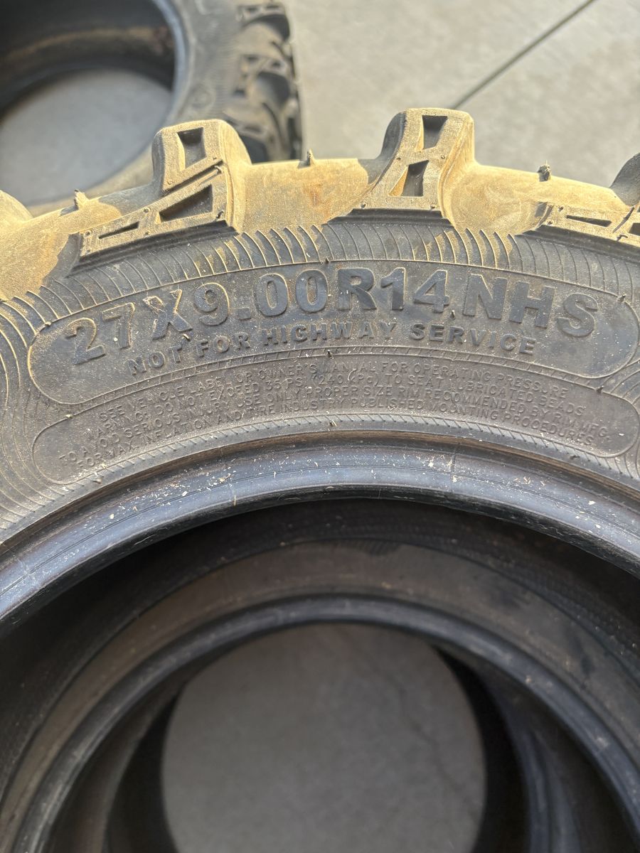 PayPalI have a set UTV tires. I took them off my Honda Pioneer 1000-6. They are still in good shape and have plenty of tread. The rear two are 27x11 R14 and the front two are 27x9 R14. Armstrong is the brand.