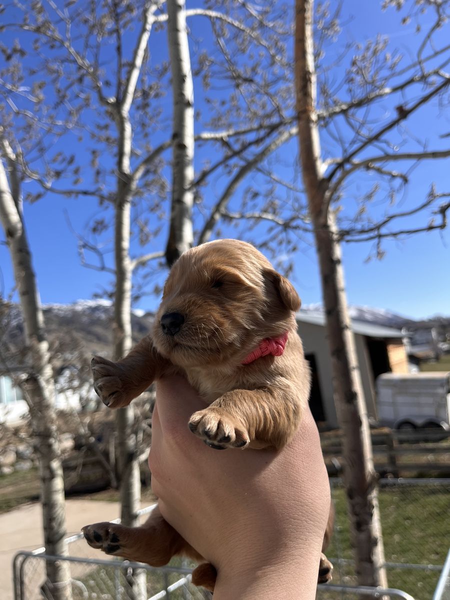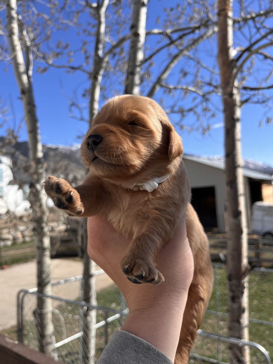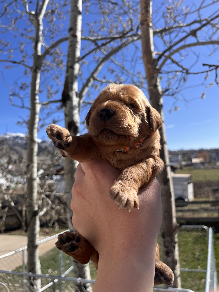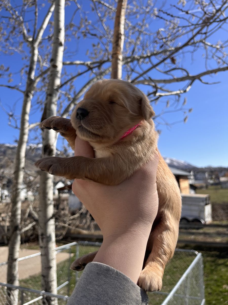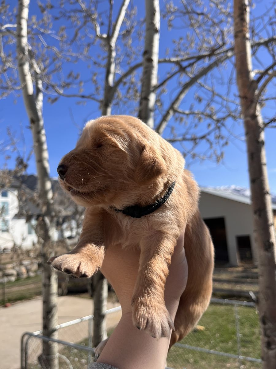 Parents: -Mom “Solo” – 55 lbs -Dad “Taw” – 70 lbs Both parents have the classic Golden Retriever traits people know and love.