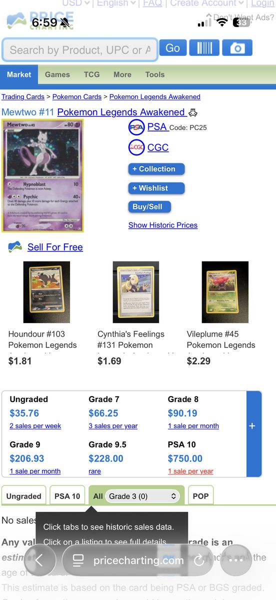 Pokemon Legends Awakened Mewtwo Holo 11/146 LP Condition $30