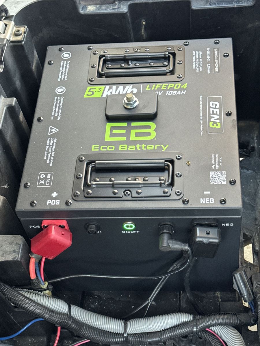 Comes with an EcoBattery GEN 3 lithium battery that is only 8 months old — great range and plenty of zip. No battery maintenance required like with lead-acid.