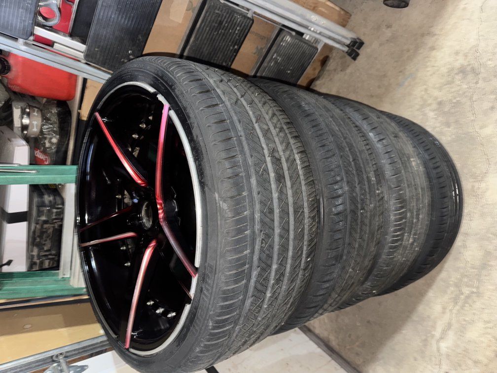 ApplePayI am selling my 20 inch wheels and tires. the rims are straight with a little curb rash and the tires are brand new with less than 500 miles on them. the only reason I'm selling them is because my motor went out in my car. they came off a 06 lincoln mkz with lug pattern 5x114.3. i am firm on my price because the tires are new. cash only no trades