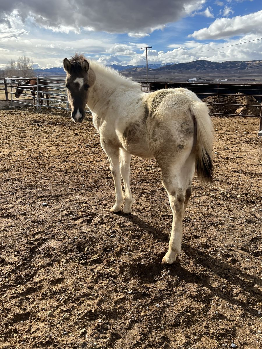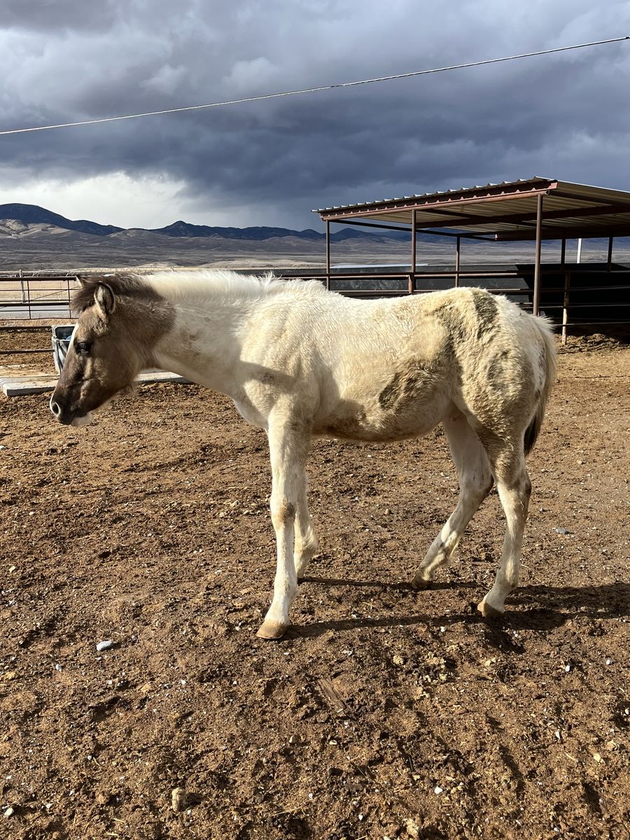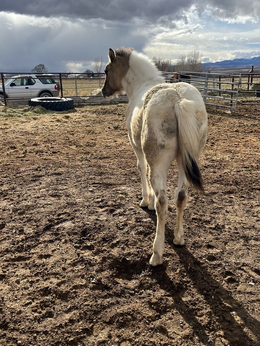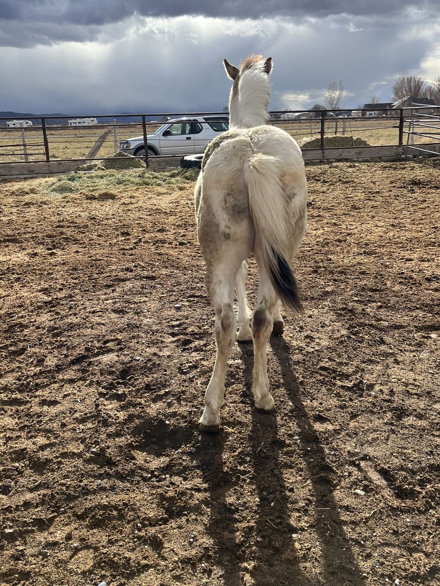 Weanling stud colt out of 1/2 draft mare and AQHA grulla stud