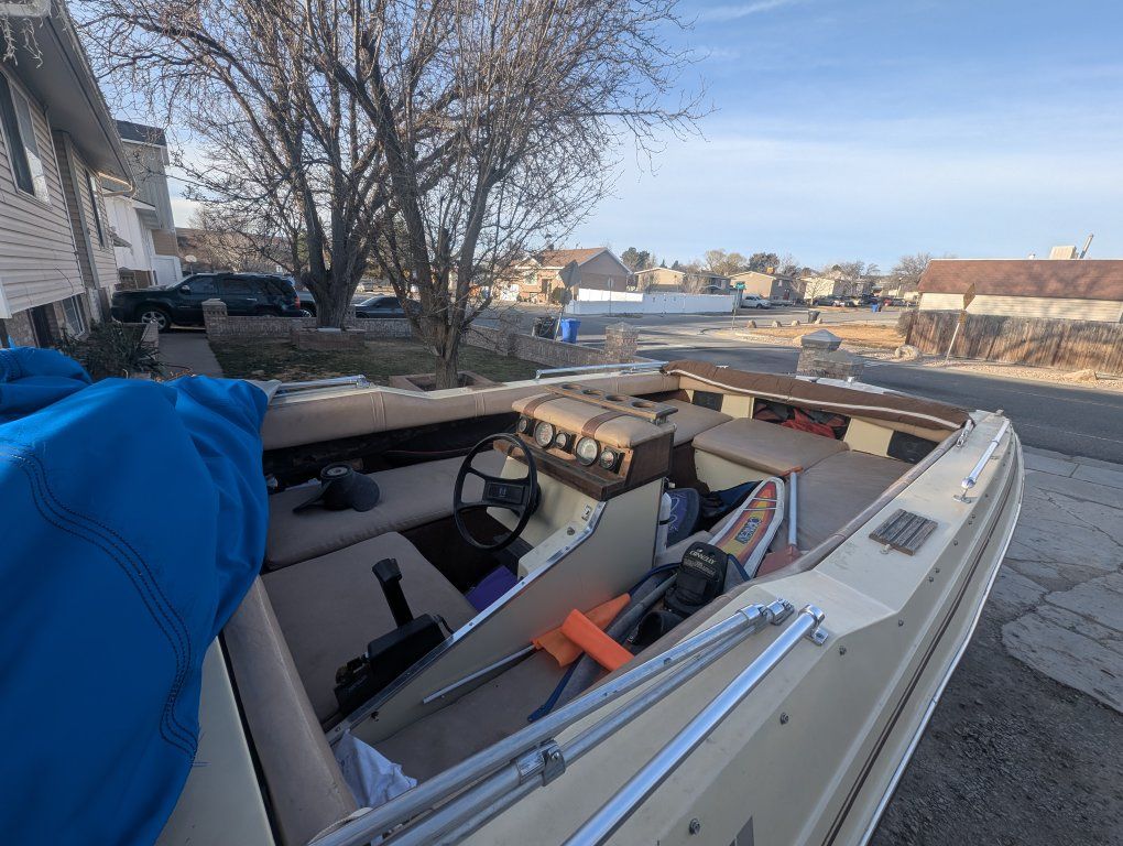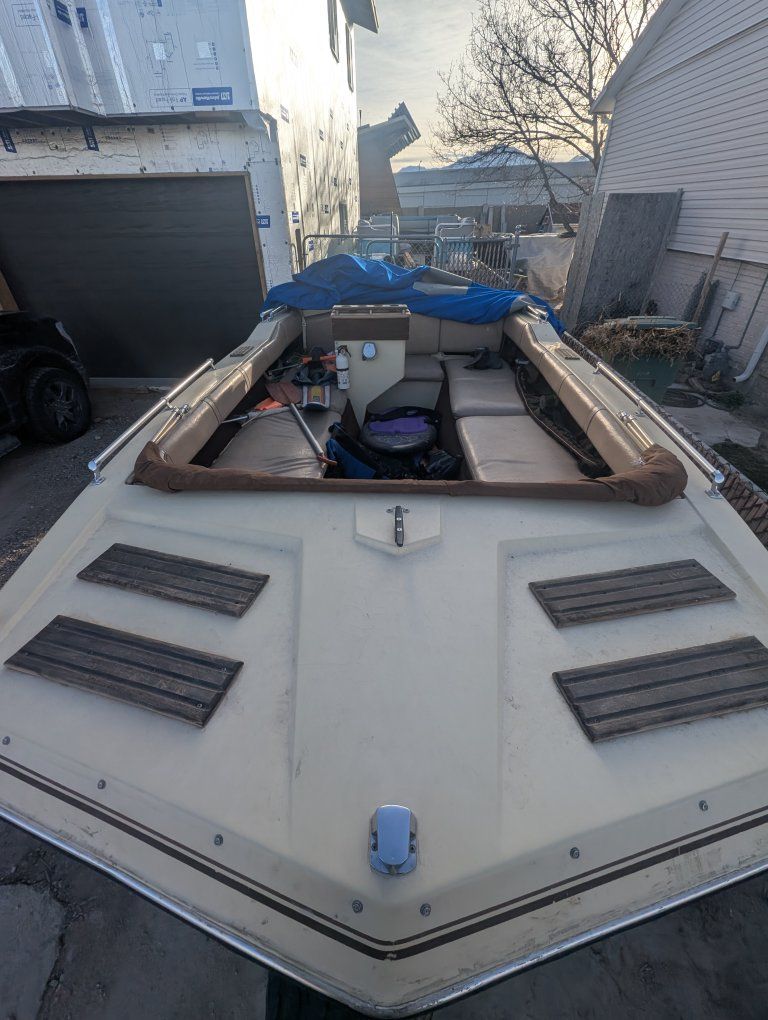 Vintage 1982 multicraft tri hull deck boat for sale. mercury 150 black max tuned up by A-Rock propeller last month. Garaged for the last 30 years. Transom was rebuilt a few years ago. Full bimini with sides in great shape. Ski's, life jackets etc included. Trailer tires have minimal wear. This is not a project boat, it's ready to put on the lake and have fun