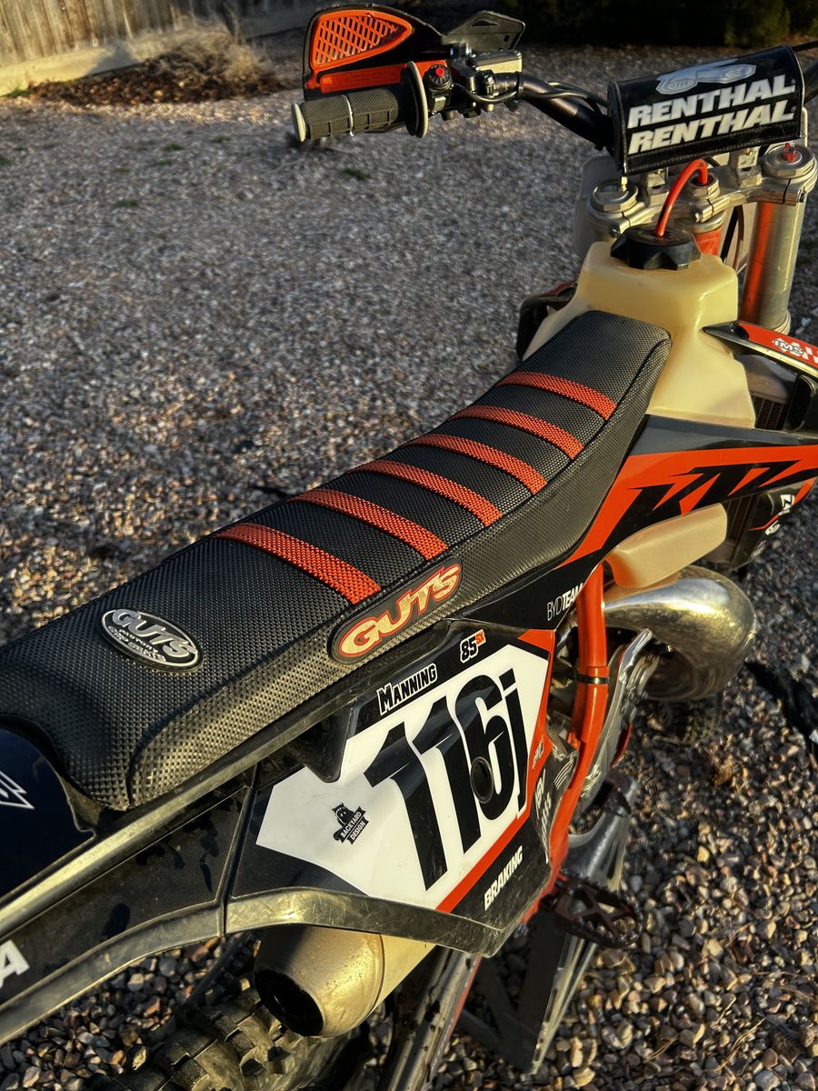Brand new chain and sprockets, comes with brand new set of tires, multiple sets of plastics, I have TWO rear shocks for it with multiple different springs for the shock. Comes with stock Excel Small Wheels, has brand new Tusk Foot Pegs, Brand new Tusk Billet Throttle Tube, Tusk Bar Risers. $3,400 OBO NO TRADES