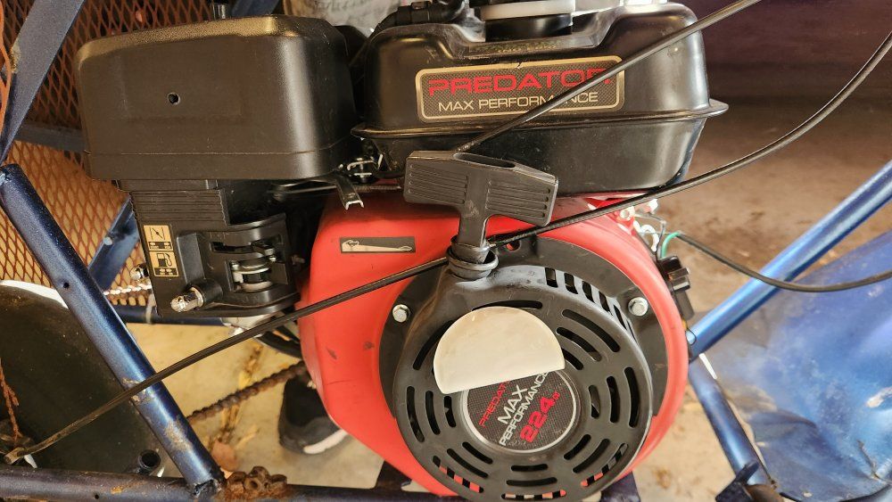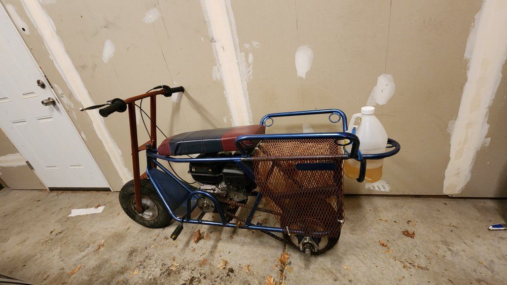 Just a little mini bike made from a 1960s tote goat frame. Painted it and put a good harbor freight engine on it with a little tire and brakes on the back. Gets up to 35mph and is a ton of fun to drive 700 obo