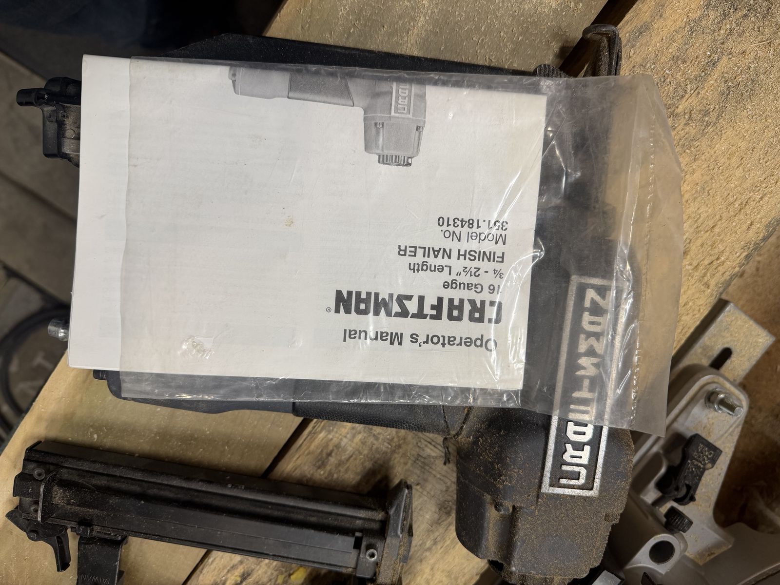 Craftsman air nail guns. Smaller one is 18 gauge. Bigger one is 16 gauge. Shoots maximum of 2 1/2” nails located in West Point. FCFS, no holds $ 40 each or $60 for both.