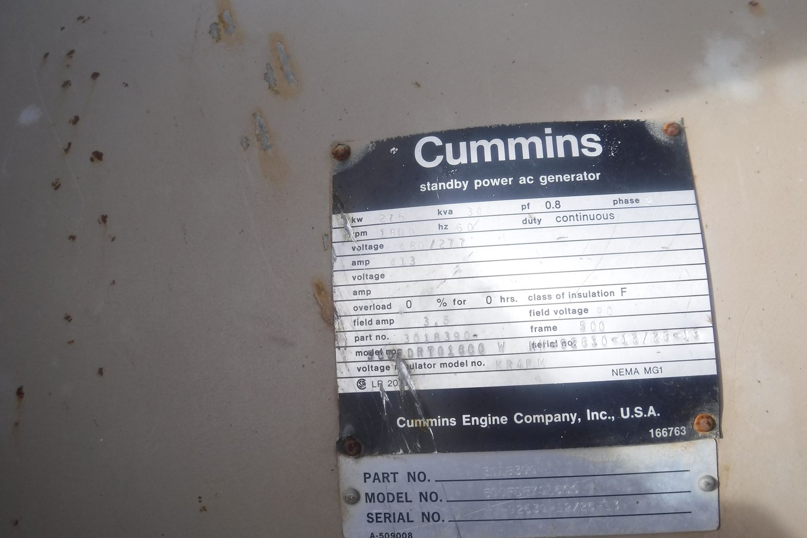 Cummins 275 KW Genset. BC4 - 855 Cummins Diesel. 1431 ACTUAL HOURS. 1-3 phase. 120-240-480V. Very clean and well maintained unit Frome the State of Wahington General services. Work ready. $14,900. Located in Twin Falls ID. 208-613-0050