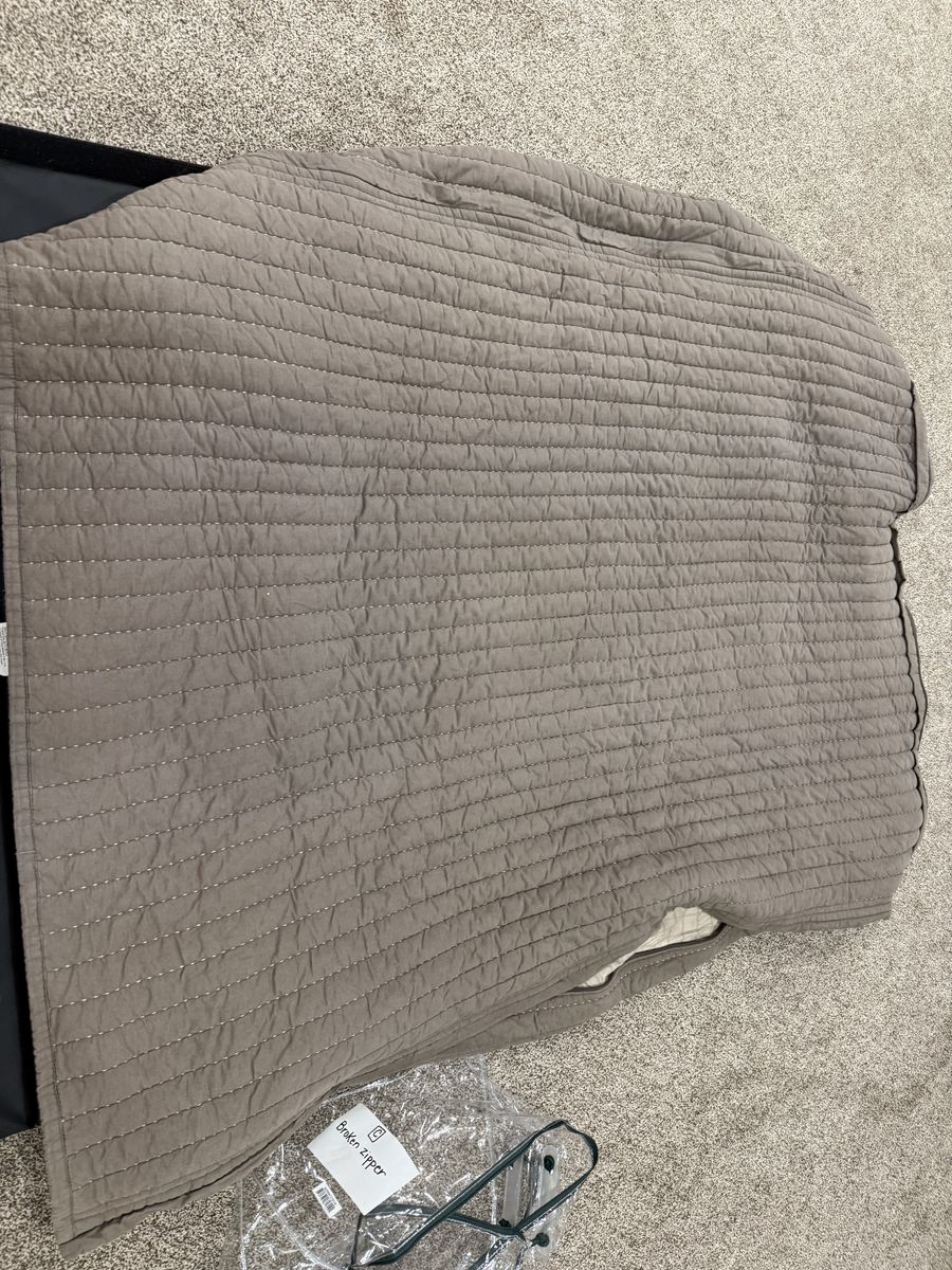 No shams or cases. Right side if laying in bed zipper doesn’t work. Zipper Teeth were damaged. MAR29