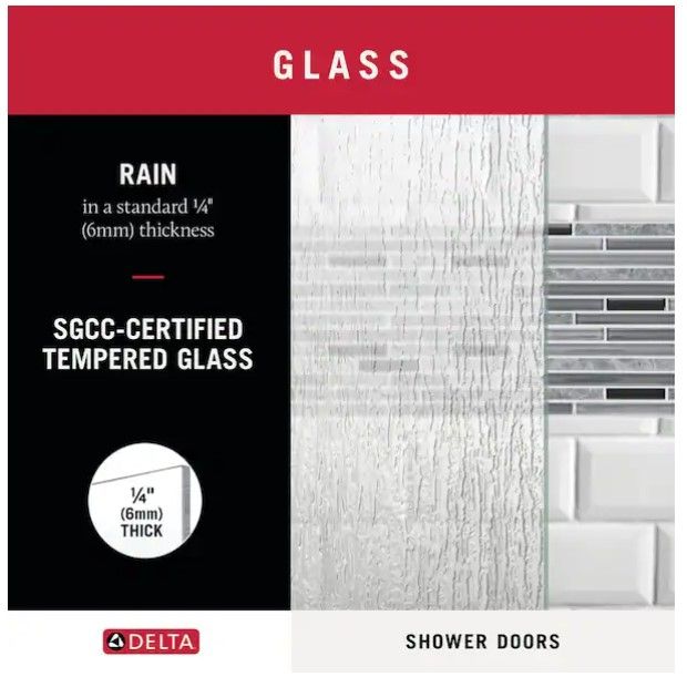 About This Product When it comes to your home, you want updates that add value, enjoyment, and last years. This Rain finished glass panel is part of the Delta 1-2-3 custom sliding shower door program. Simply choose your glass, track, and handles to build a unique, personalized shower enclosure. There are over 2,000 design combinations you can make!