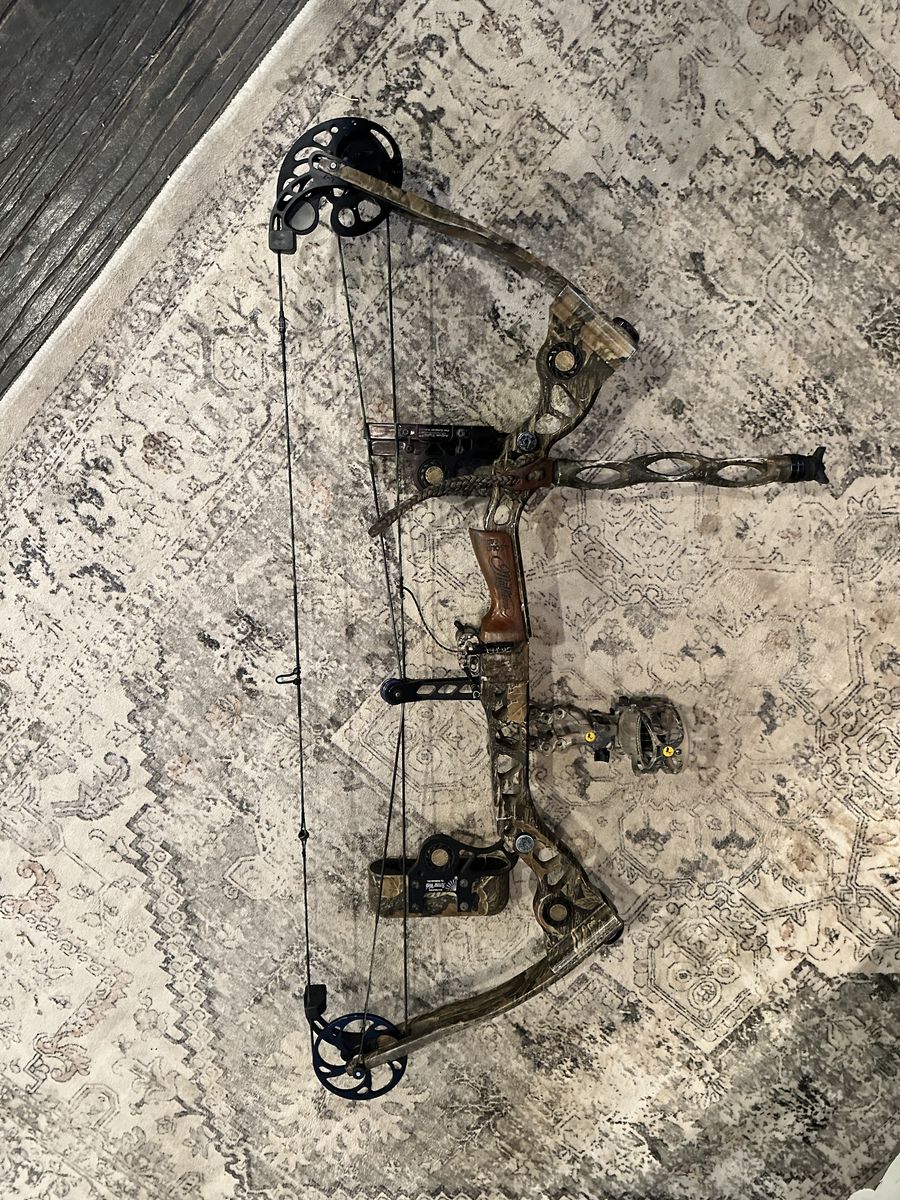 Great bow all setup to hunt. QAD drop away rest, Trophy Ridge 5 pin sight with React Technology, D loop, hunter peep, Mathew’s quiver, trophy ridge 12” stabilizer, and 10 Easton FMJ arrows built for this bow. Shoots bout 275fps with standard elk arrow. 29” draw