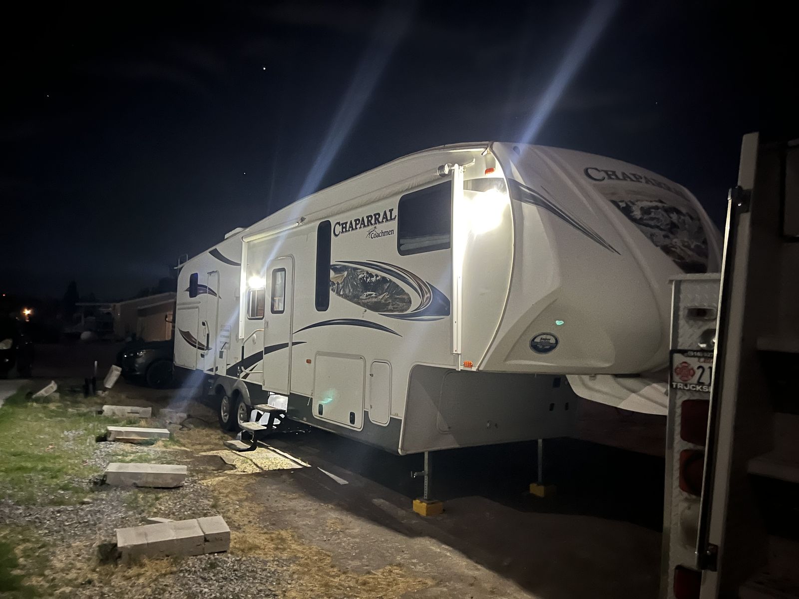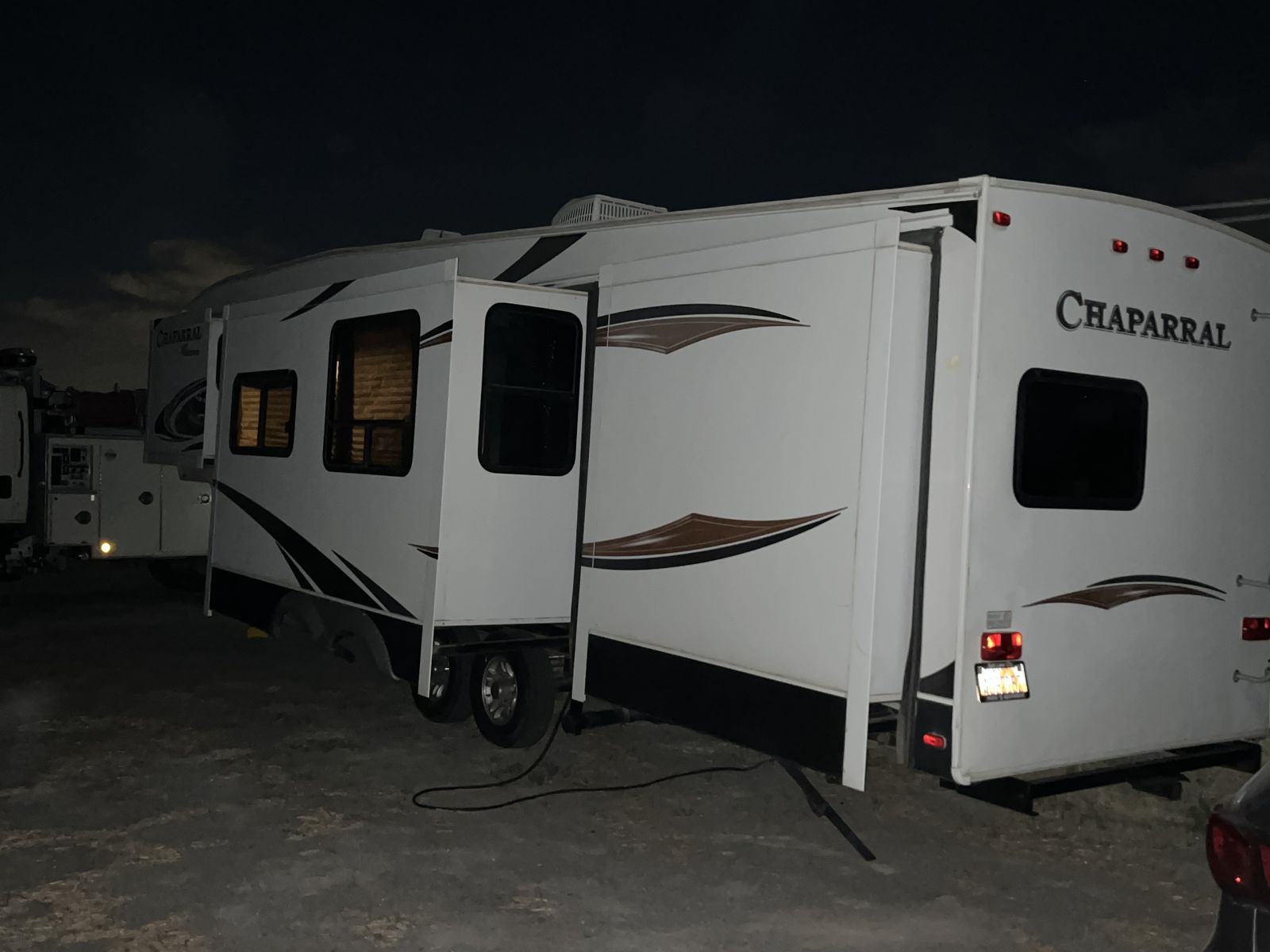 ApplePayPRICED TO SELL this great 2013 Chaparral by coachmen. Great trailer for large families. Offers 2 bedroom and 1.5 bathrooms. Offers queen bed in Master bedroom, twin bunk bed in back room also with love seat couch. 3 slide outs one in the master bedroom also one in living room and one in bunk room.2 sofas and a dining table. This trailer offers an outdoor kitchen and the mini fridge outside was recently replaced. This is a 30 amp trailer, all appliances work great and the ac blows ice cold. And Hot Water Heater is scalding hot. Hot water heater is both electric and propane.