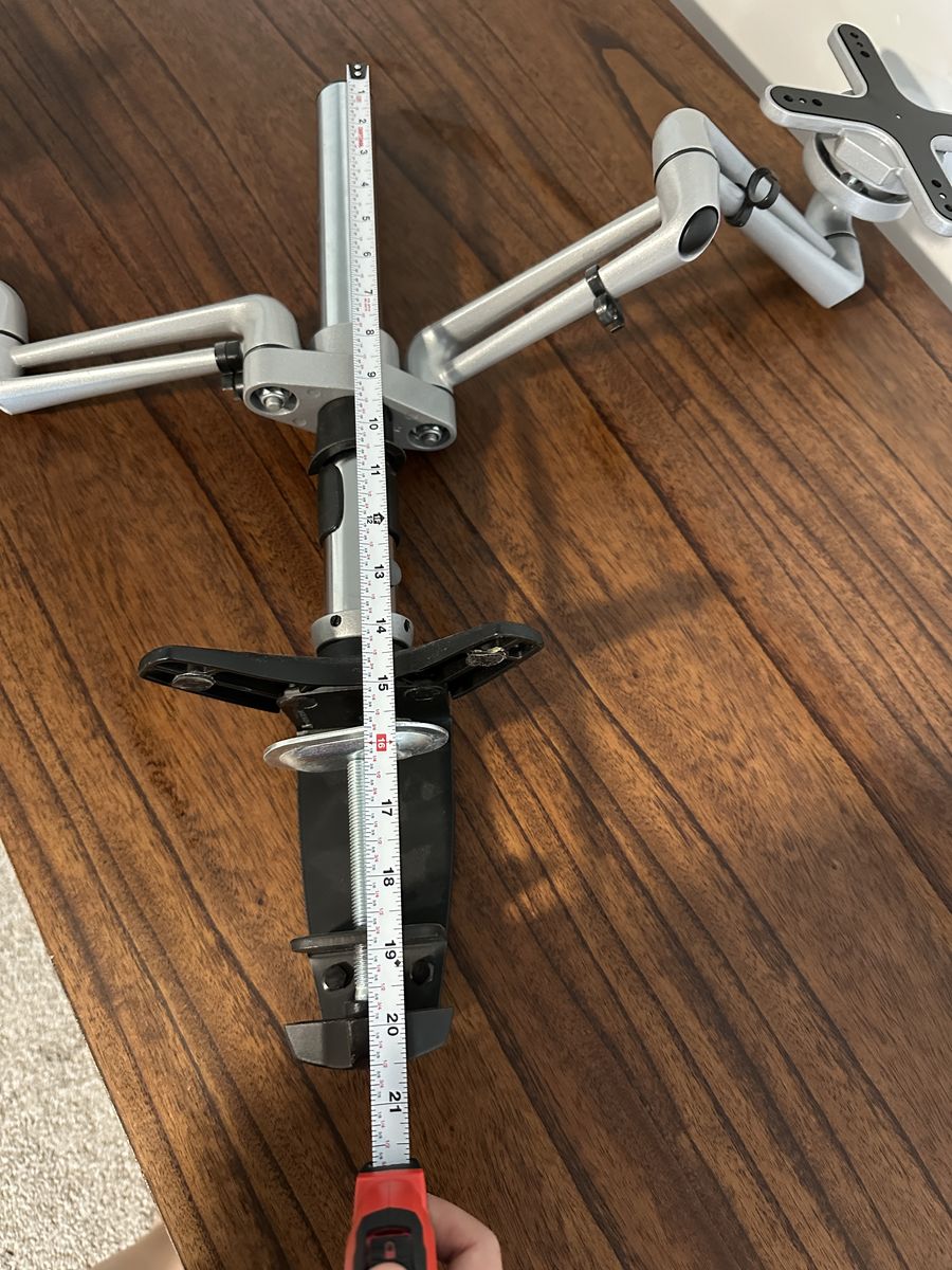 VenmoMonitor arms that can hold 2 monitors. I previously used them to hold my two 24" monitors and just upgraded to a new setup. They work as they should and are pretty adjustable. The dimensions are in the photos. Pickup/public meet up. Venmo/Cash