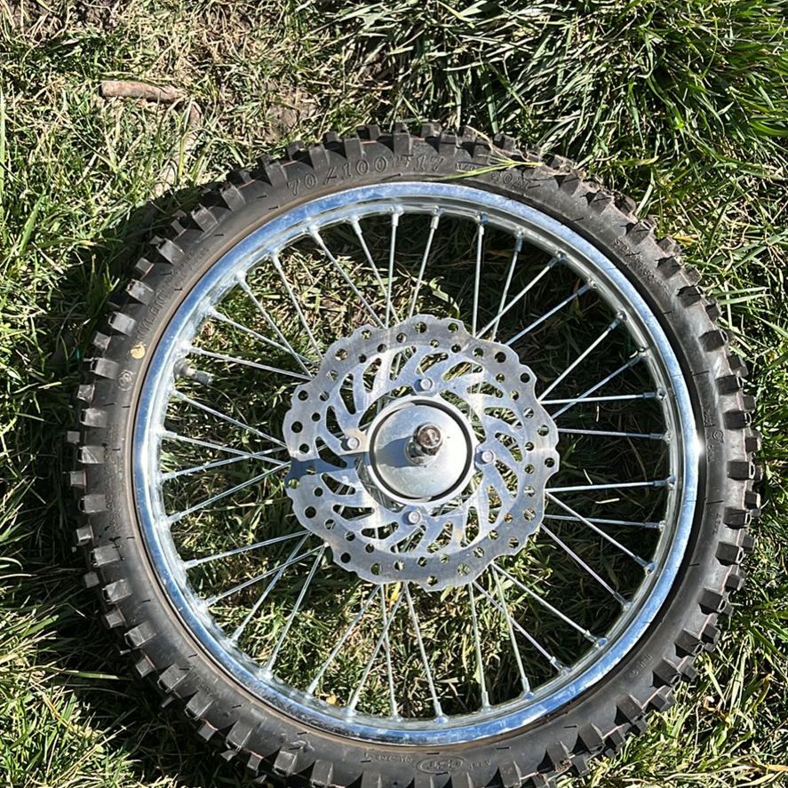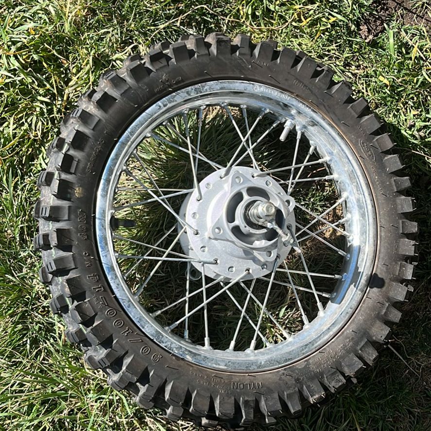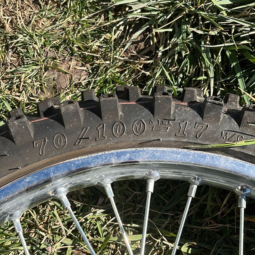 VenmoSize 70/100 and 90/100. Front disk break. Internal drum break on the rear. I never used them