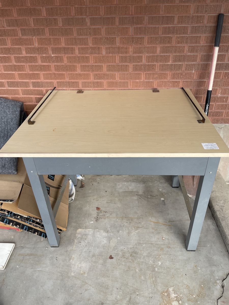 VenmoMetal frame drafting style table. 38 inches wide, 47 inches long, and 37 inches tall.