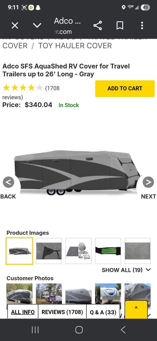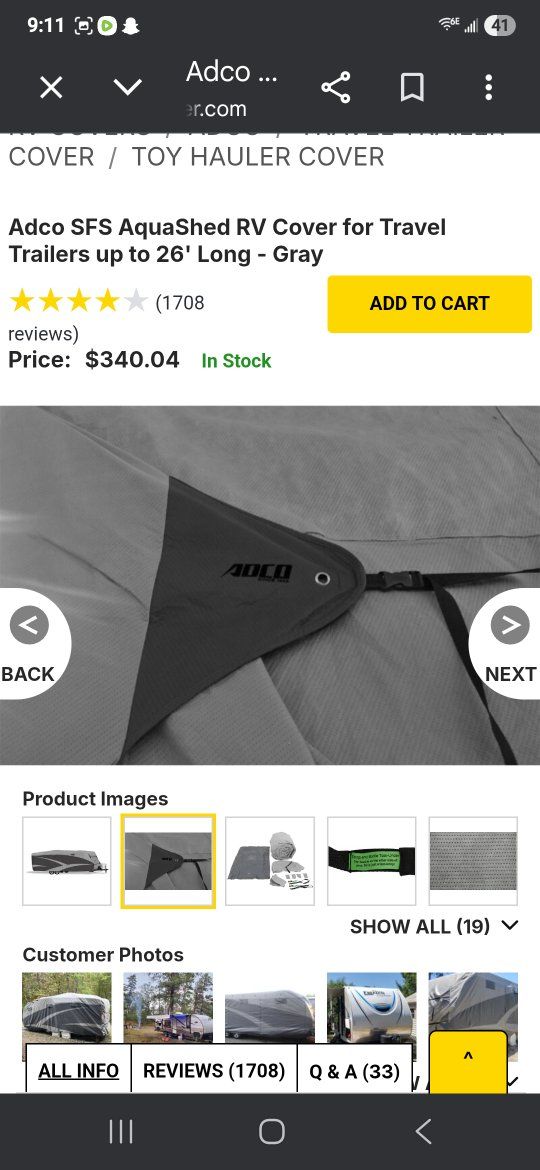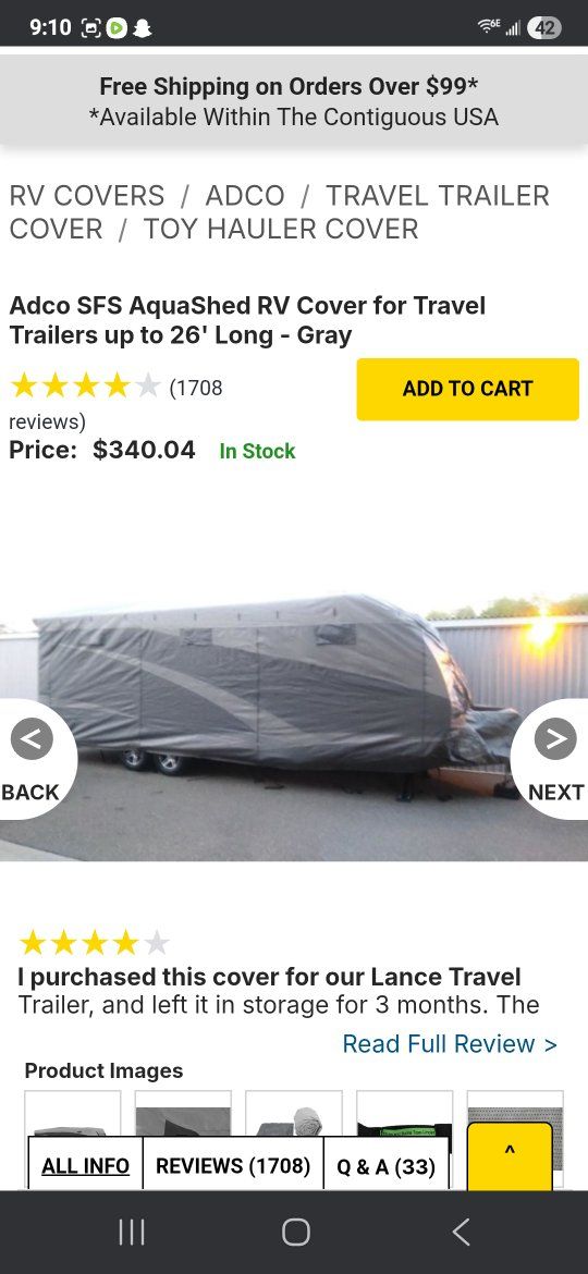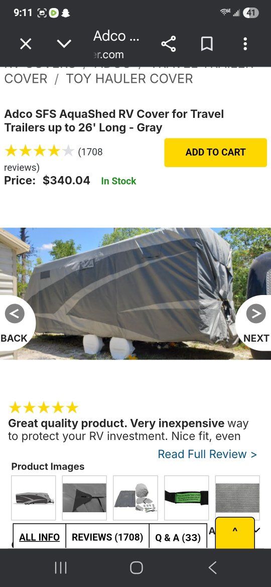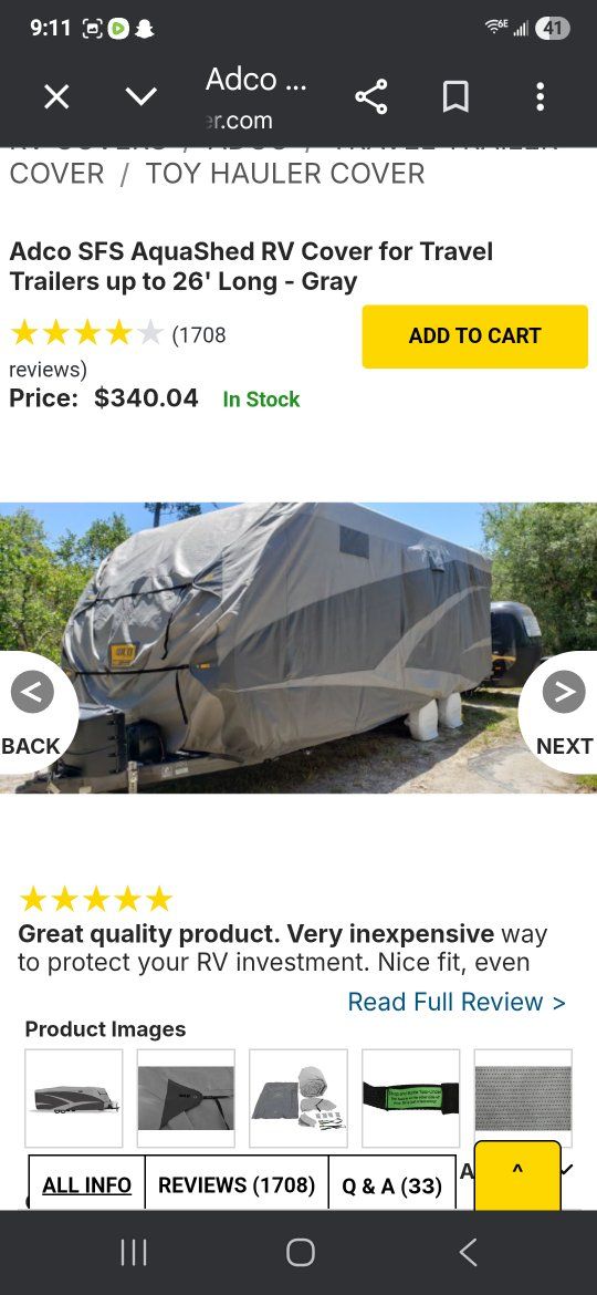 Adco SFS Aquashed RV cover for up to 26' long travel trailers barely used, $100 obo