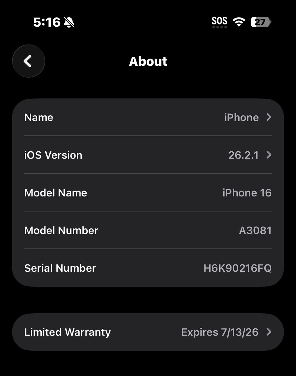 VenmoSelling this phone because I just upgraded! It is an iPhone 16, 128 GB, Unlocked for any cellular provider, 100% Battery Capacity (only 55 charge cycles). Model Number is A3081. The warranty is still active until July 13th 2026! It has always had a screen protector, camera protector, and case on it. (There’s a small crack in the screen protector, as shown in the photo, but the actual screen is not damaged)