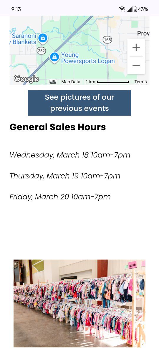 cache county fairgrounds is holding the divvy up children's consignment sale. Wednesday, Thursday, and Friday 10-7 Saturday 8-2... half off day; if consigners chose to mark their items that way
