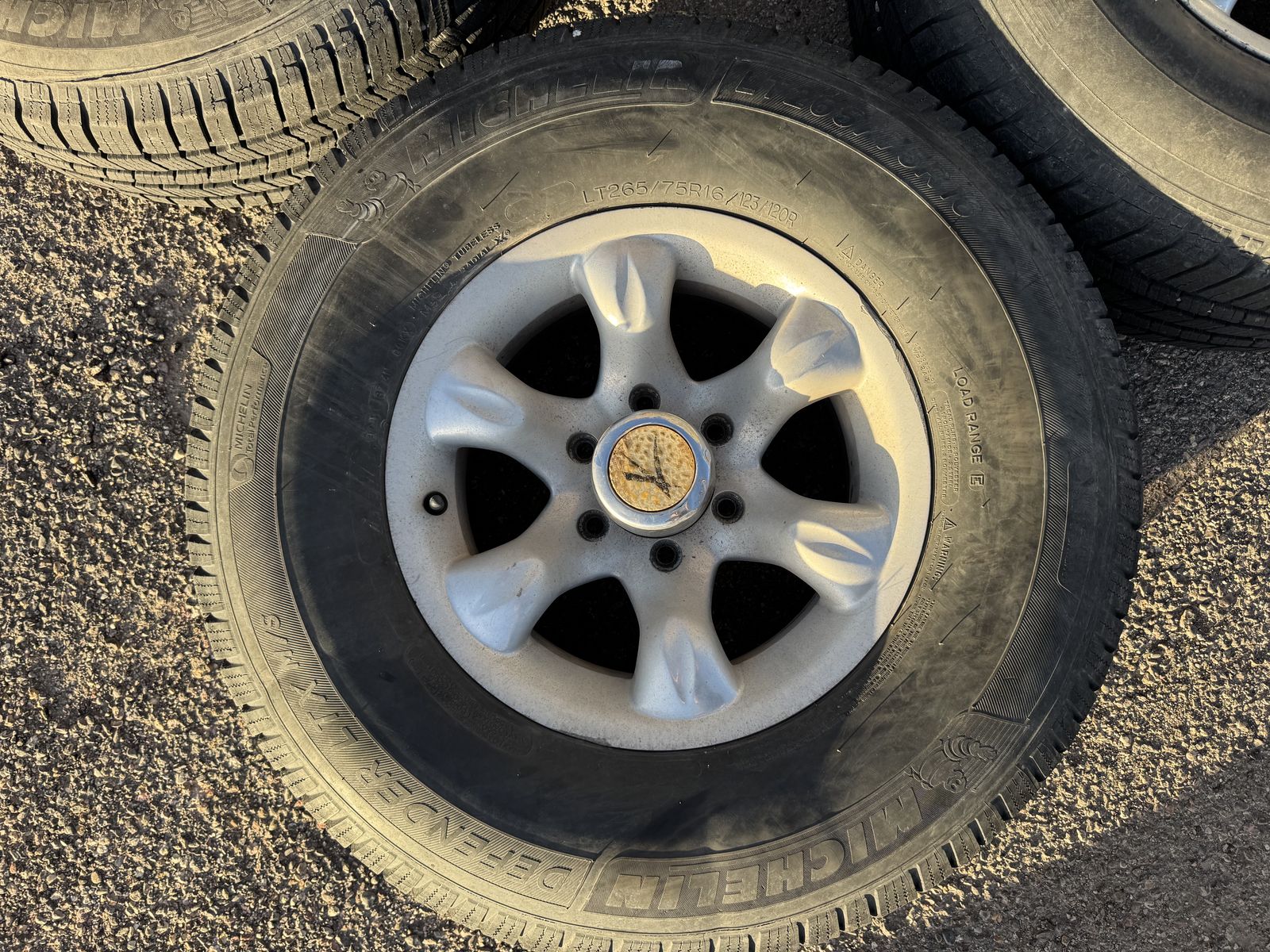 VenmoTires have a lot of life left on them, 265 75 16 load range E tires. Lug pattern for the rims are 6x5.5 so most 6 lug Chevy, GMC, Toyota, and Nissan will fit them. Call or txt if you have any questions, 500 obo.