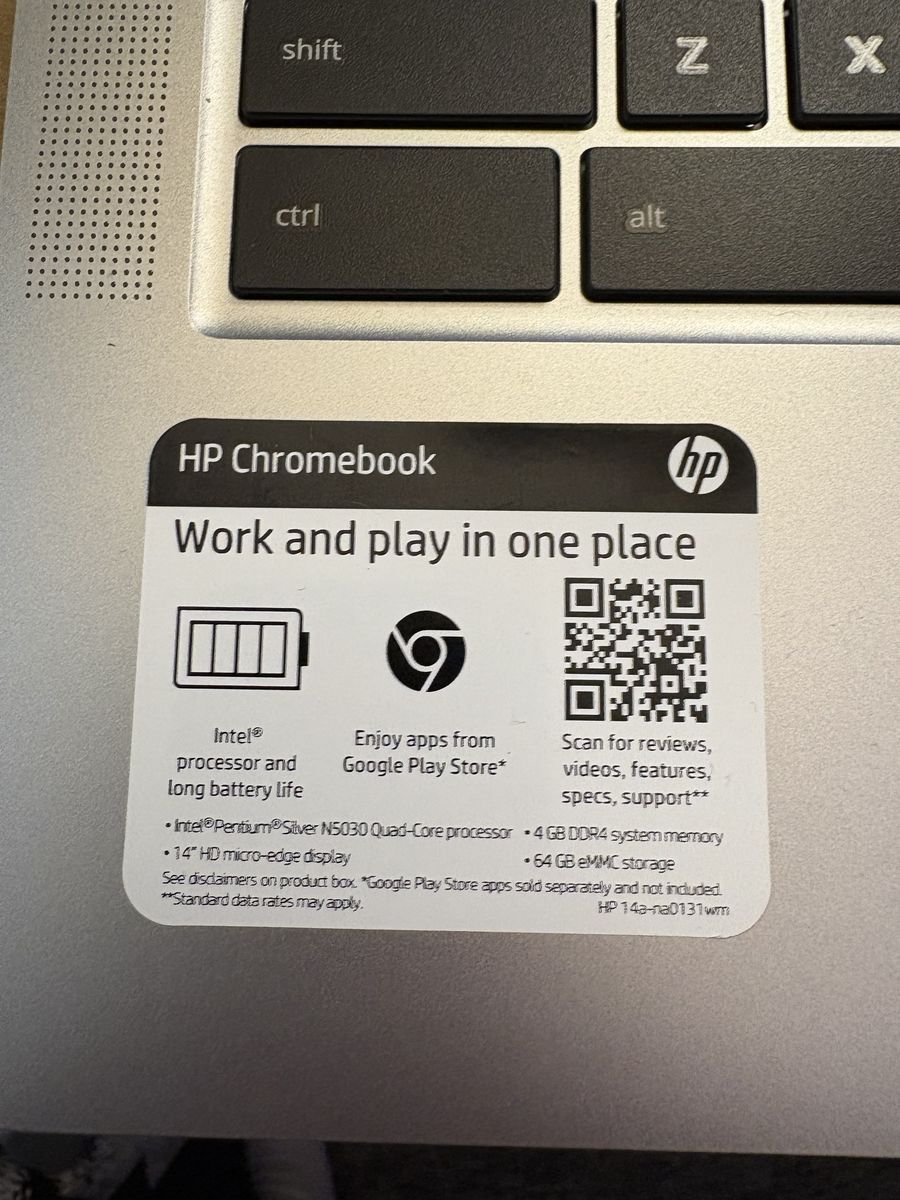 Venmo14 FHD Laptop, Intel Pentium Silver N5000, 4GB RAM, 64GB HD, Chrome OS, Silver, 14a-na0031wm