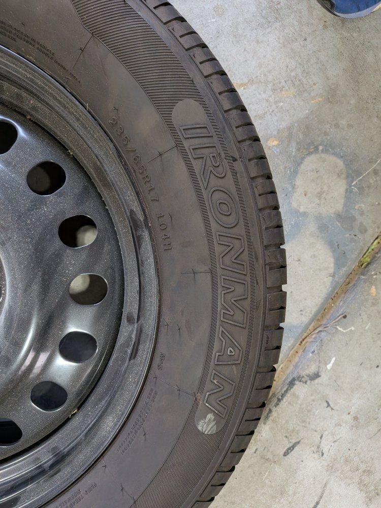 This was an extra tire for my 2016 Kia Sorrento I no longer have. It is basically new we only drove 128 miles on this tire because we blew a tire camping and bought this to get home. When we got into town we bought a new set and kept this one as an extra. Has been stored indoors above the garage.
